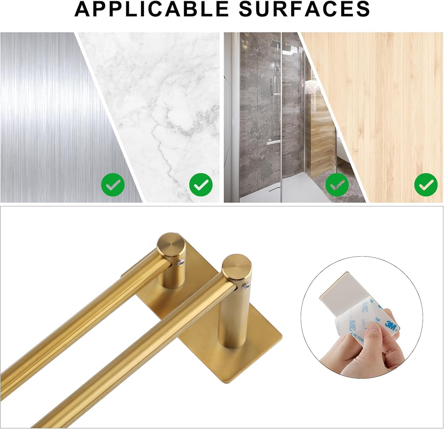 - 【Weite Anwendung】Handtuchhalter für eine Vielzahl von glatten Oberflächen wie Fliesen, Wänden, Türen, Glas, Holztüren, Kunststoff, Keramik, Metalloberflächen und anderen glatten Oberflächen. (nicht geeignet für Tapeten oder gestrichene Wände)