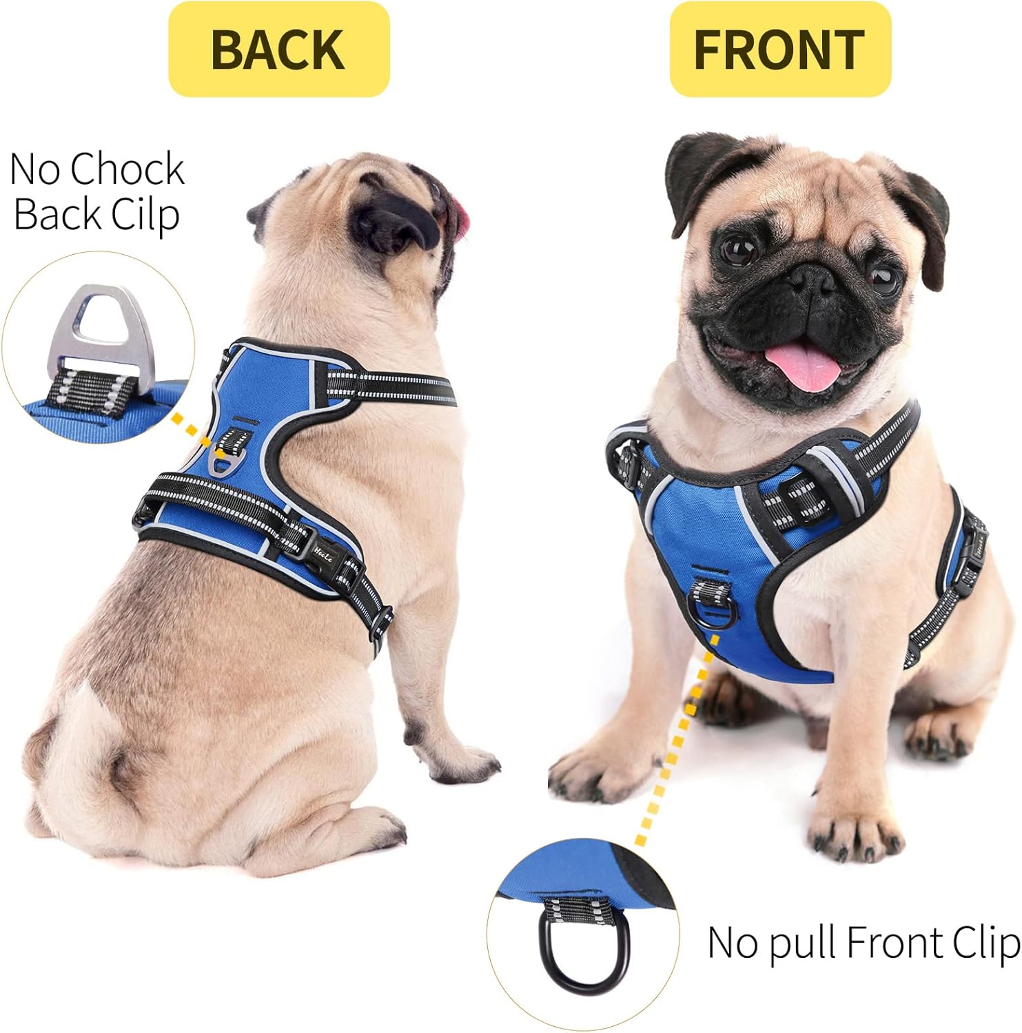- No-Pull und No-Choke Design - Keine Belastung des Hundehalses, Zugdruck wird gleichmässig auf den Körper verteilt, um Ziehen und Ersticken zu verhindern. Mit 2 Metallleinenringen für sicherere Hundespaziergänge. Verwenden Sie den Brustring, um zu