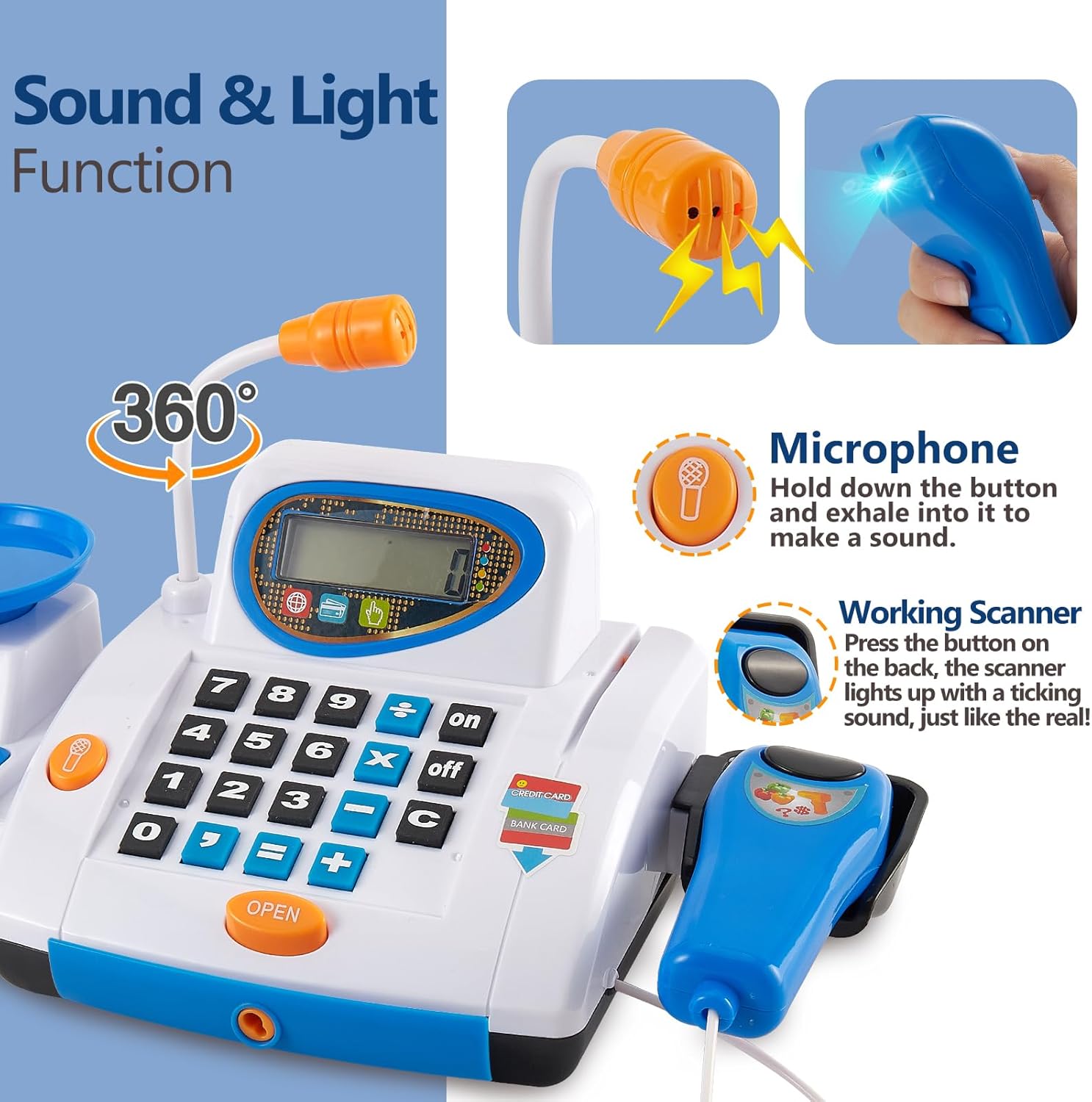 - 【Spielkasse Kinder mit Scanner und Sound】Das Scannen eines Gegenstands mit einem Scanner wird von einem roten Licht und einem tropfenden Geräusch begleitet, genau wie bei einem echten Scanner.