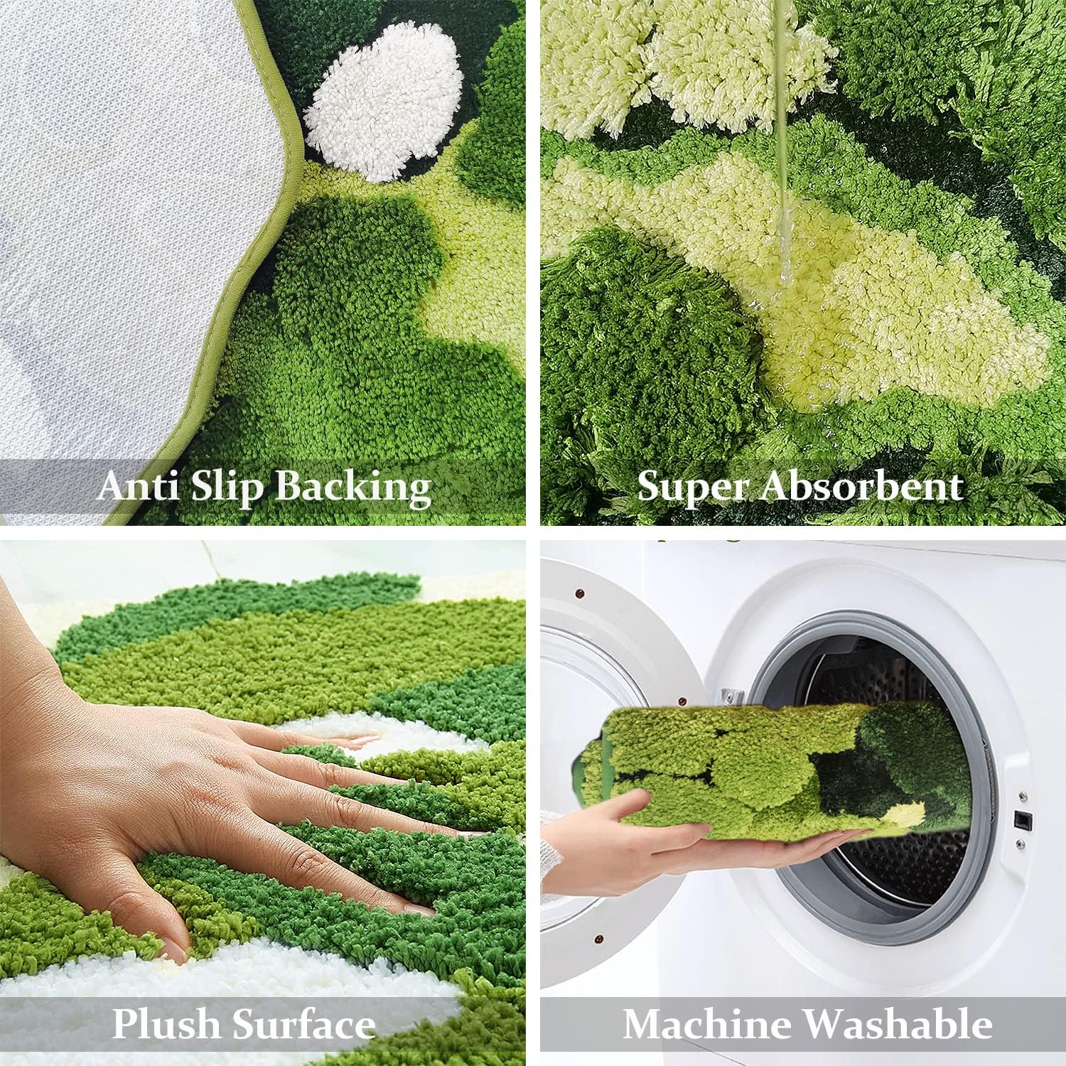 - Super saugfähige und rutschfeste Unterseite: Plüsch und dick, sehr bequem zu treten, gute Wasseraufnahme, hält Ihre Füsse trocken und schützt den Boden. Der Badezimmerteppich aus grünem Moos ist mit TPR-Material unterzogen, das hervorragende