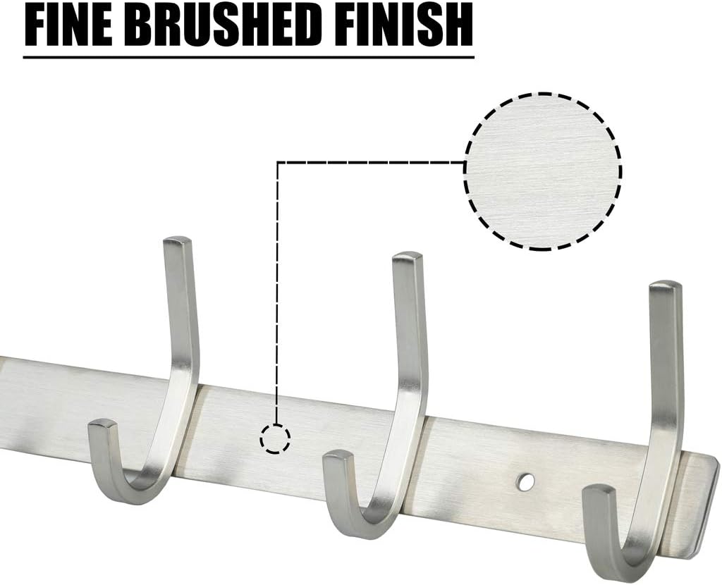 - STABILER MANTELHAKEN: Der Garderobenhaken wird hergestellt aus strapazierfähigem 304 Edelstahl, mit fein gebürsteter Oberfläche und der kann am meistens 30 kg Gegenstände wie Mäntel, Bademäntel und Küchenpfannen tragen