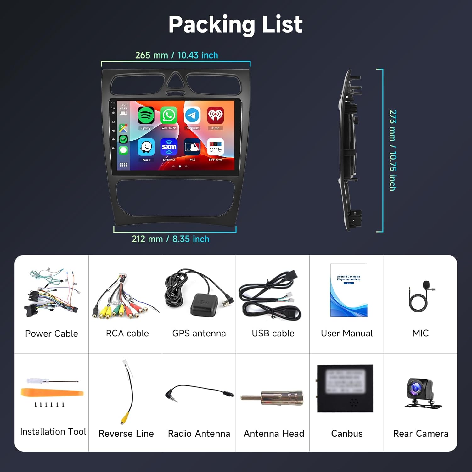 - Unterhaltung und Nutzwert mit integriertem DSP, GPS und FM/RDS-Radio: Das Carplay-Autoradio für Mercedes Benz C/CLK Klasse 2000–2005 bietet Premium-Audioqualität, integrierte 32 EQ-DSP-Einstellungen, die den Klang an Ihre Vorlieben anpassen.