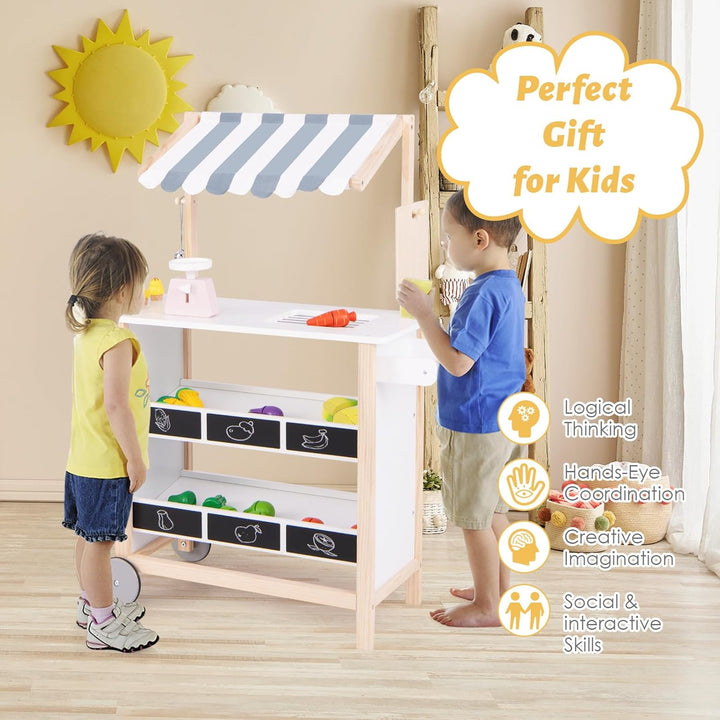 - 🍦~Multifunktionales Kinderspielzeug-Set~ Dder Kinder-Kaufladen kann nicht nur eine Eisdiele simulieren, sondern auch als Lebensmittelmarktstand verwendet werden. Ausgestattet mit vielen offenen Regalen, können Kinder Lebensmittel und Gemüsespielzeug