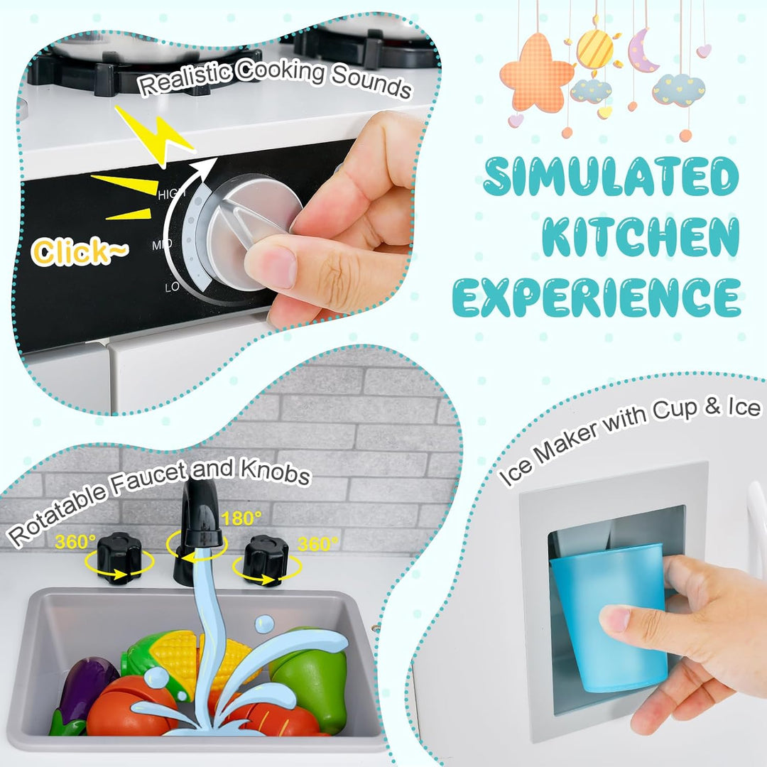 - REALISTISCHES KÜCHEN-SPIELZEUG-SET: Diese Kinderküche ist mit vielen Annehmlichkeiten wie einem Kühlschrank, einer Eismaschine, einer Mikrowelle, einem Geschirrspüler, einem Ofen und 2 Kochfeldern ausgestattet, damit sich die Kinder wie in einer