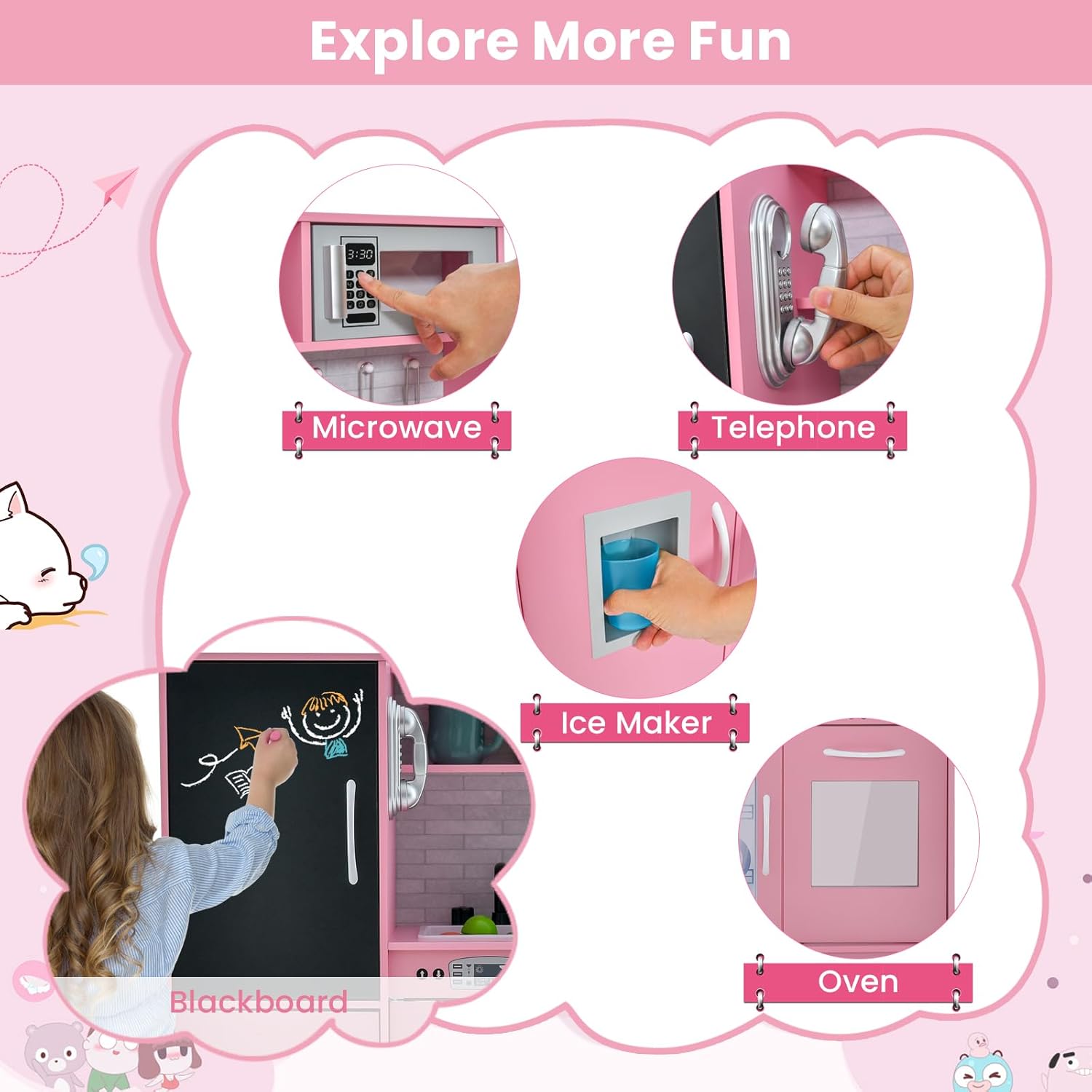- REALISTISCHES KÜCHEN-SPIELZEUG-SET: Diese Kinderküche ist mit vielen Annehmlichkeiten wie einem Kühlschrank, einer Eismaschine, einer Mikrowelle, einem Geschirrspüler, einem Ofen und 2 Kochfeldern ausgestattet, damit sich die Kinder wie in einer
