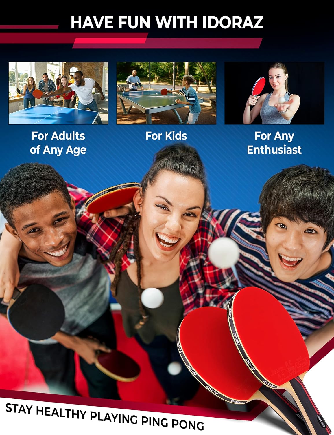 - 🦄 Erstaunlich schnell - Wenn Geschwindigkeit und Balance das sind, was Sie suchen, sind Idoraz Pingpong Schläger wahrscheinlich Ihre beste Wahl. Kombiniert eine Geschwindigkeitsstufe von 99 mit einem perfekt ausbalancierten Rahmen, sind sie
