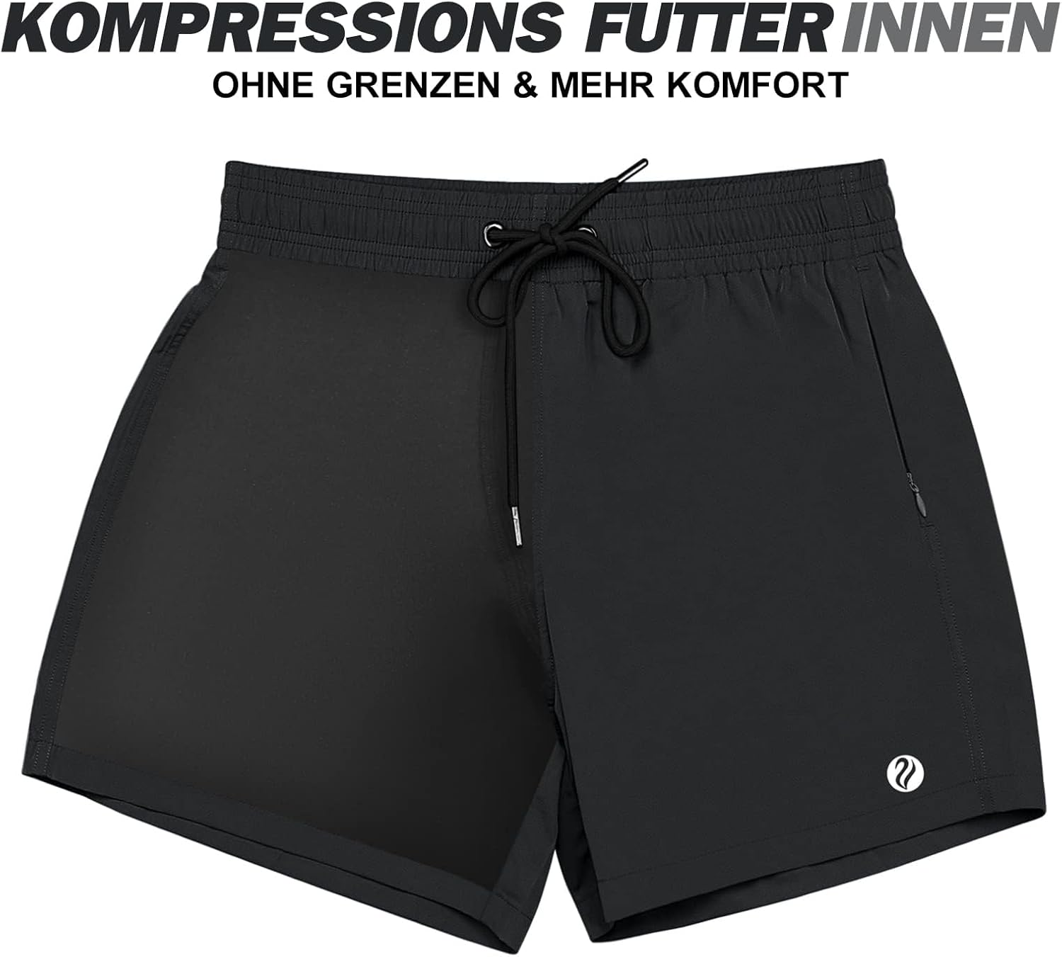 - 2in1 Kompressionsfutter schwimmhose: Boxershorts sind weich und bequem. Sie werden sich nicht eng fühlen. Verhindert durch Sand verursachten Juckreiz, Doppelschicht ohne Mesh verhindert, dass der Oberstoff an der Haut reibt, und es mag den Komfort Ihrer