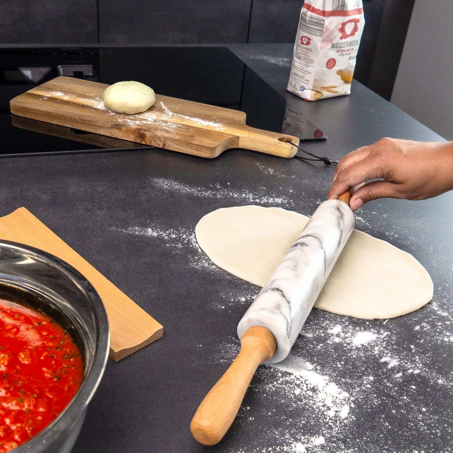 - Ob für Pizza, Brot oder Gebäck - das Marmor-Nudelholz ist die perfekte Ergänzung für jede Küche und jedes Backprojekt.