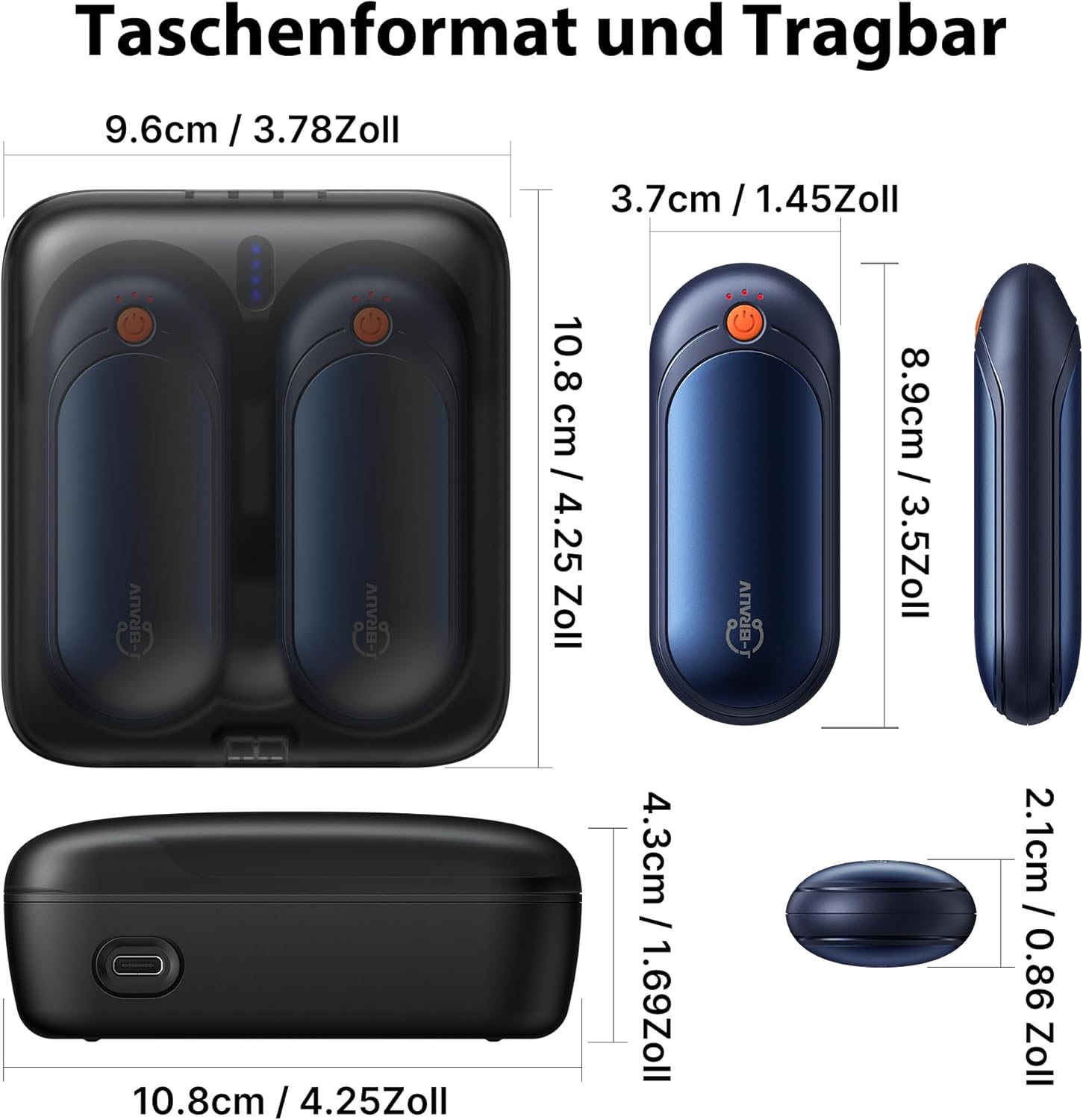 - Handwärmer Elektrisch Beidseitig: Im Gegensatz zu einseitigen Modellen liefern diese handwärmer wiederverwendbar gleichmässige Wärme an Handflächen und Handrücken, sie sind wiederholt verwendbar dank einfacher Aufladung – perfekt als elektrische