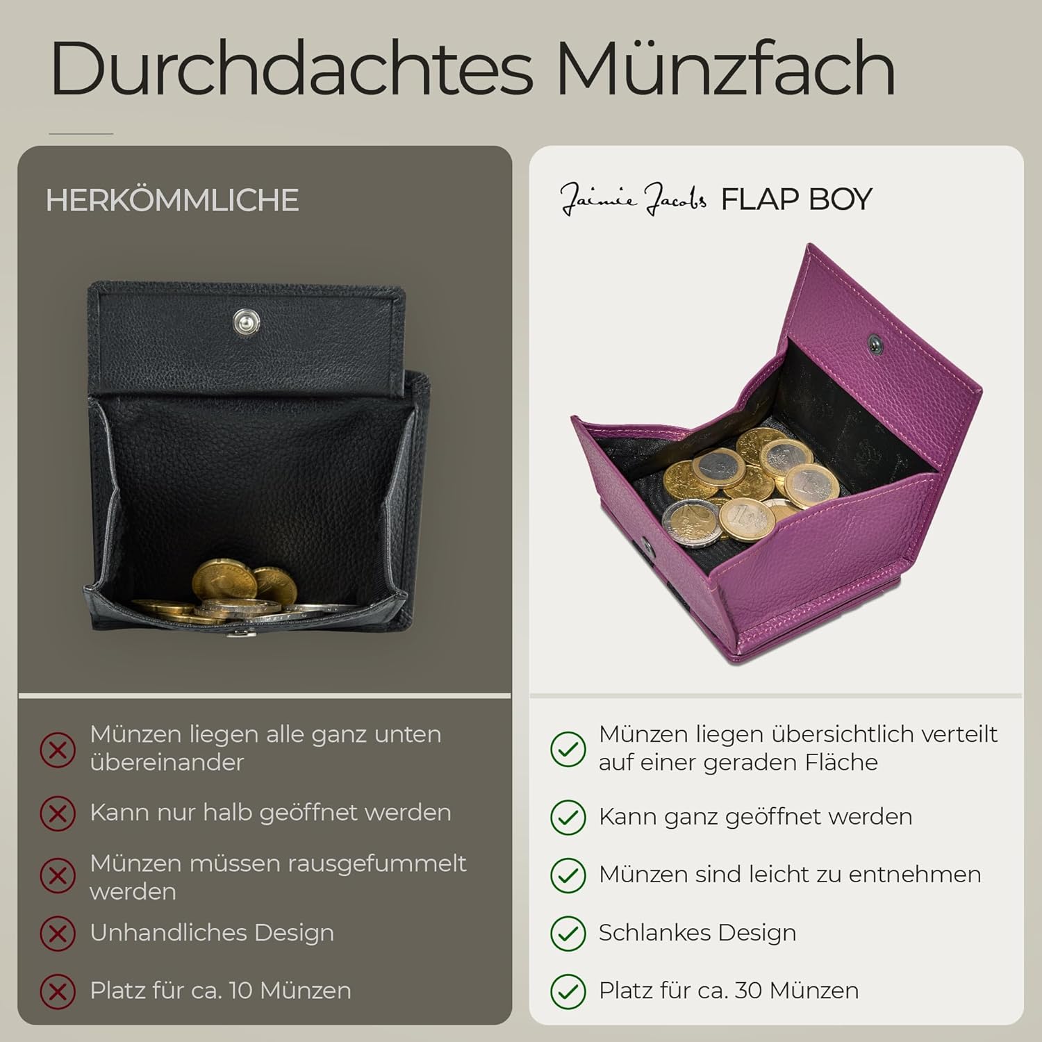 - Wiener Schachtel: Das Kleingeldfach fasst locker 20 Münzen und ist extrem übersichtlich