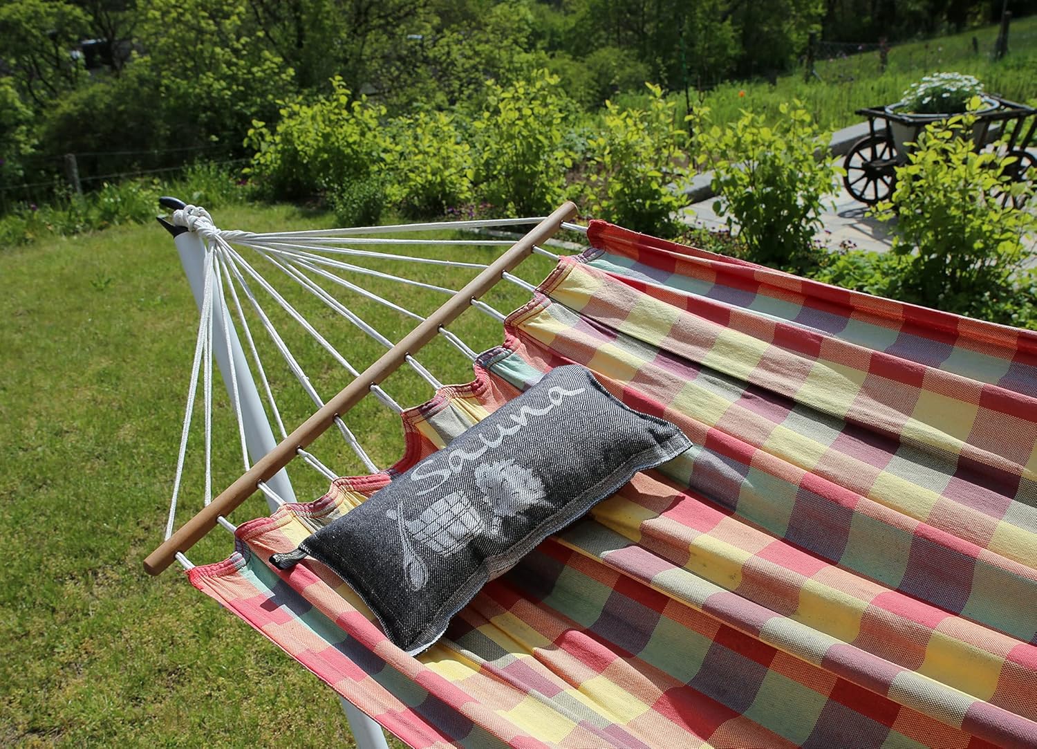 - Grösse des Kissens - 40 x 22 cm in verschiedenen Farbkombinationen. Das Kissen hat eine angenehme Grösse, um es im Nacken zu platzieren. Egal ob in der Sauna, auf einer Liege, in der Hängematte oder im Flugzeug
