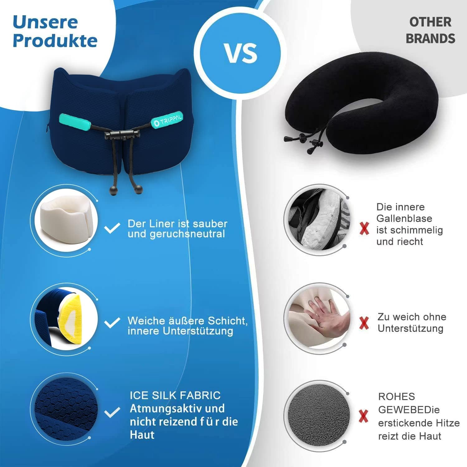 - LEICHT ZU TRANSPORTIERENDES REISEKISSEN: Begleitet von einer hochwertigen, leichten Tragetasche, die das Packmass des Nackenkissens halbiert. Lässt sich einfach transportieren, indem man es am Gepäckwagen befestigt. In Navyblau gehalten, ist dieses