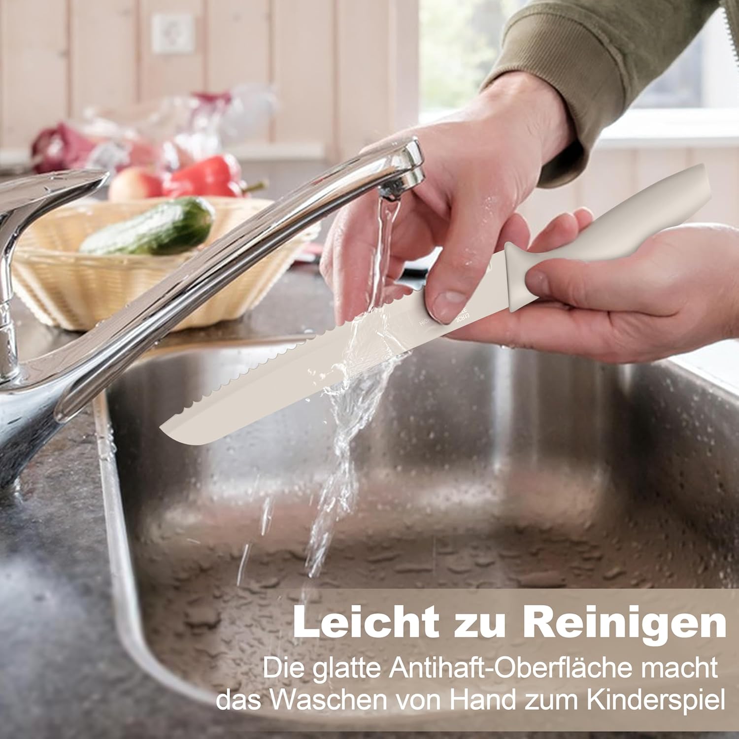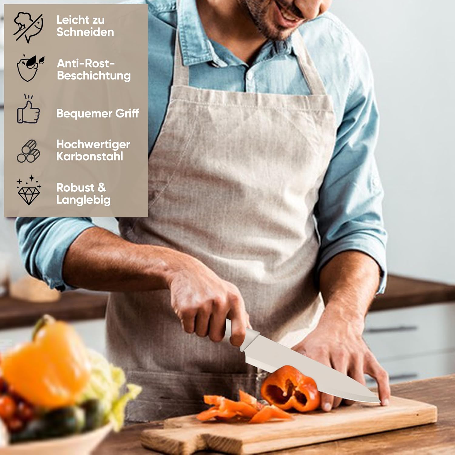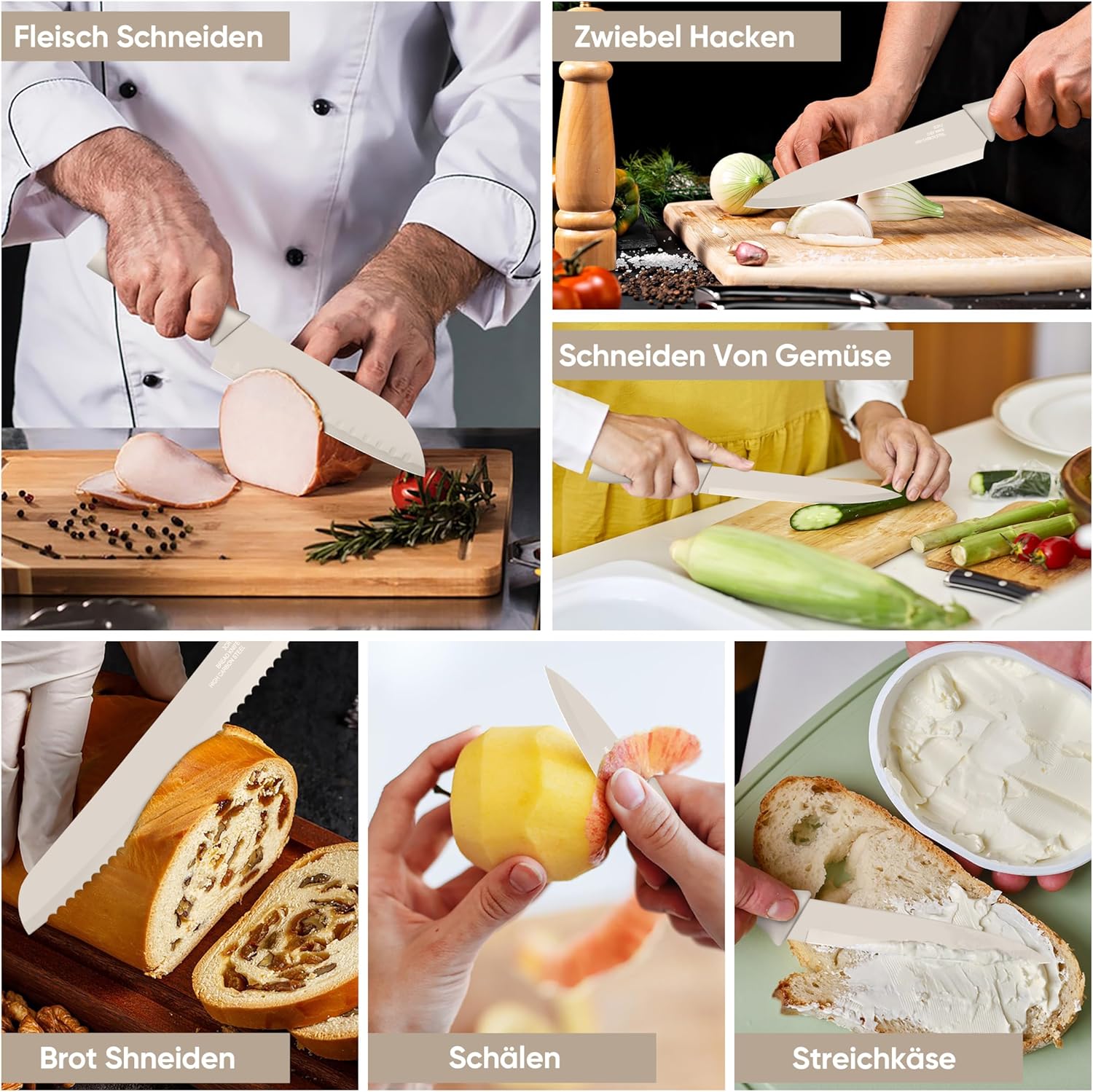 - Professionelles Messerset: Joyfair 6 Stück Küchenmesser Set enthält 1 x Kochmesser, 1 x Schneidemesser, 1 x Santokumesser, 1 x Brotmesser, 1 x Universalmesser und 1 x Gemüsemesser, Die verschiedene tägliche Küche Bedürfnisse wie Schneiden von