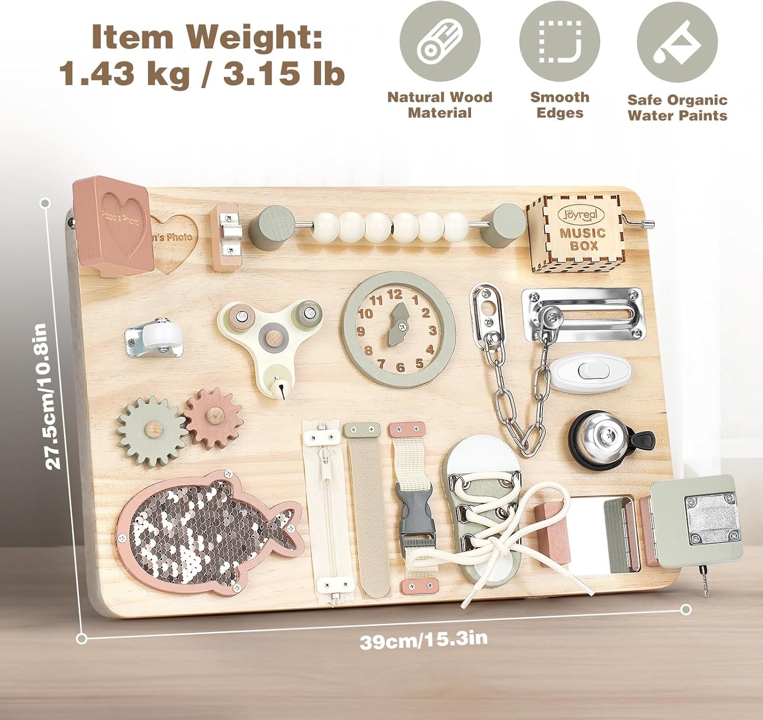 - đ¶ăGrössere Grösse und Mehr AktivitĂ€tenă- Dieses grosse busy board baby wurde mit mehr interaktiven Funktionen als Standardbretter entwickelt und umfasst 16 Spielelemente wie Riegel, Schlösser, Schalter, SchnĂŒrsenkel, ReissverschlĂŒsse,