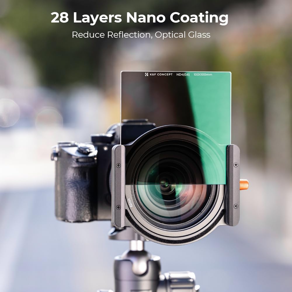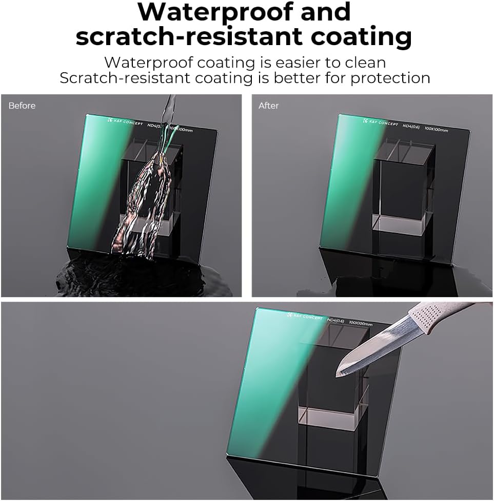 - 2 BLENDENSTUFEN: K&F Concept Rechteckfilter ND4 erlaubt die Aufnahme von Bewegungsunschärfe und Tiefenschärfe-Effekten bei schwachem Licht. Hervorragend geeignet für Landschaftsfotografie und cineastische Effekte in der Videografie. Hinweis: Neue und