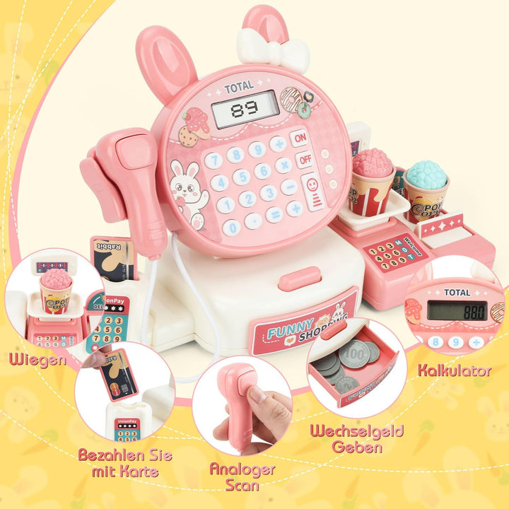 - 🍧 Ideales Festtagsgeschenk für Kinder: Ob zu Weihnachten, Geburtstagen oder anderen Anlässen – die Kinderkasse mit Scanner und Sound ist ein perfektes Geschenk! Sie zieht die Aufmerksamkeit der Kleinsten auf sich und sorgt für stundenlangen