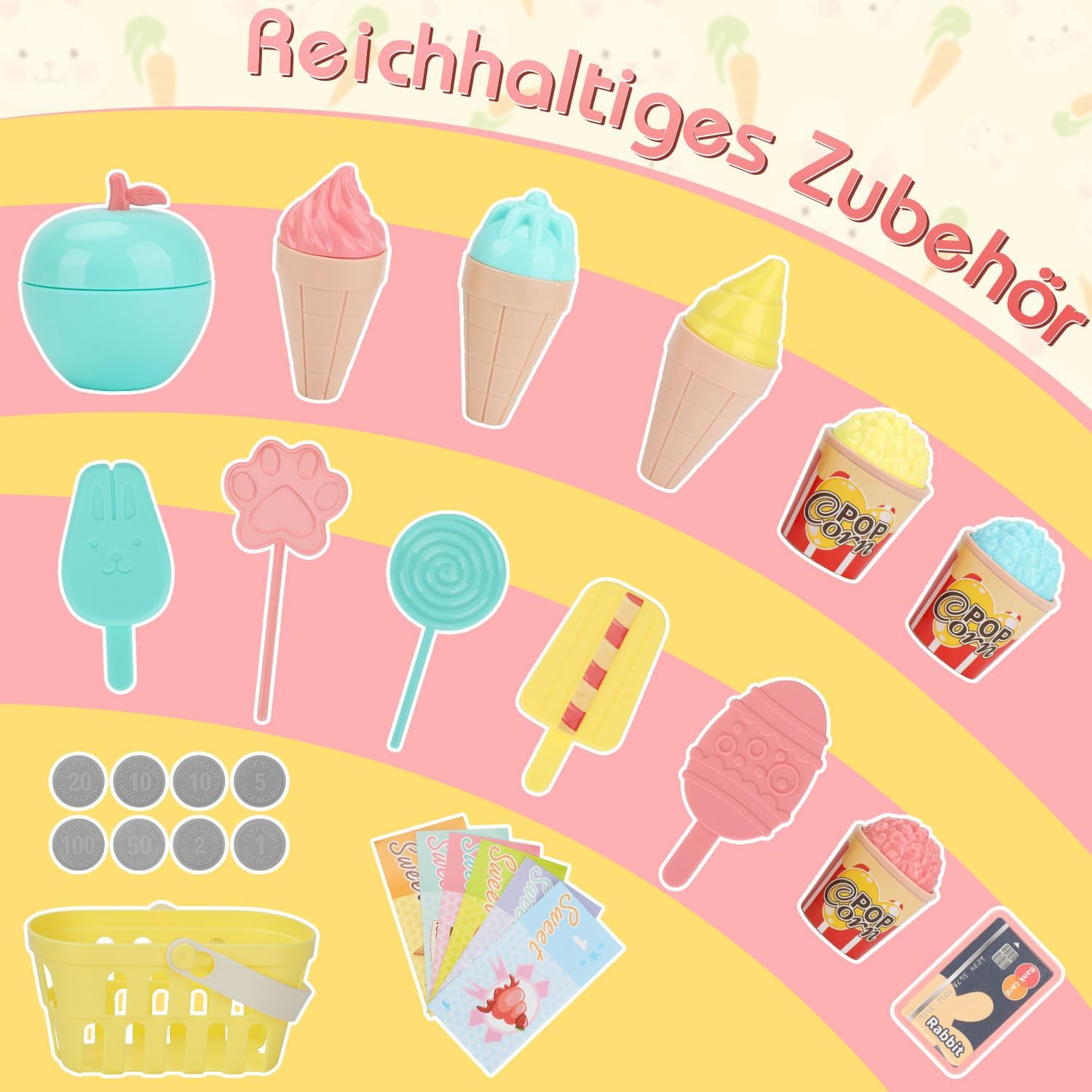 - 🍧 Rollenspiel Spielzeug: Die kasse kinder verwandelt jedes Zimmer in einen aufregenden Einkaufsladen. Kinder können in die Rolle eines Verkäufers oder Käufers schlüpfen und sich in fantasievollen Szenarien verlieren. Perfekt für spielkasse kinder!