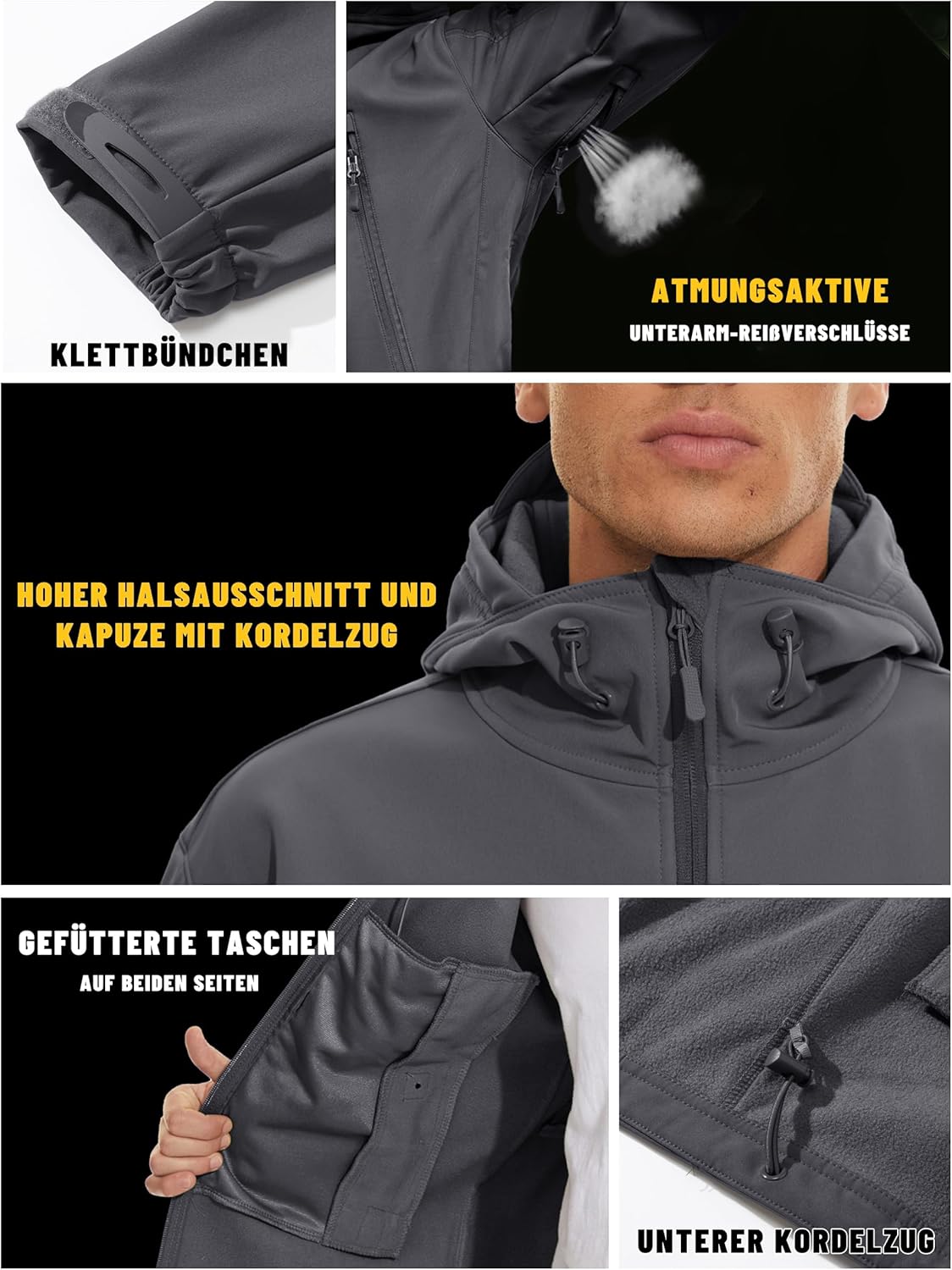 - Wasserdicht & warm: Das Softshell-Oberfläche bietet Schutz vor leichtem Wasserfall und Schnellfall, mit leichtem Innenfleece hält Sie die Jacke warm an kalten Tagen