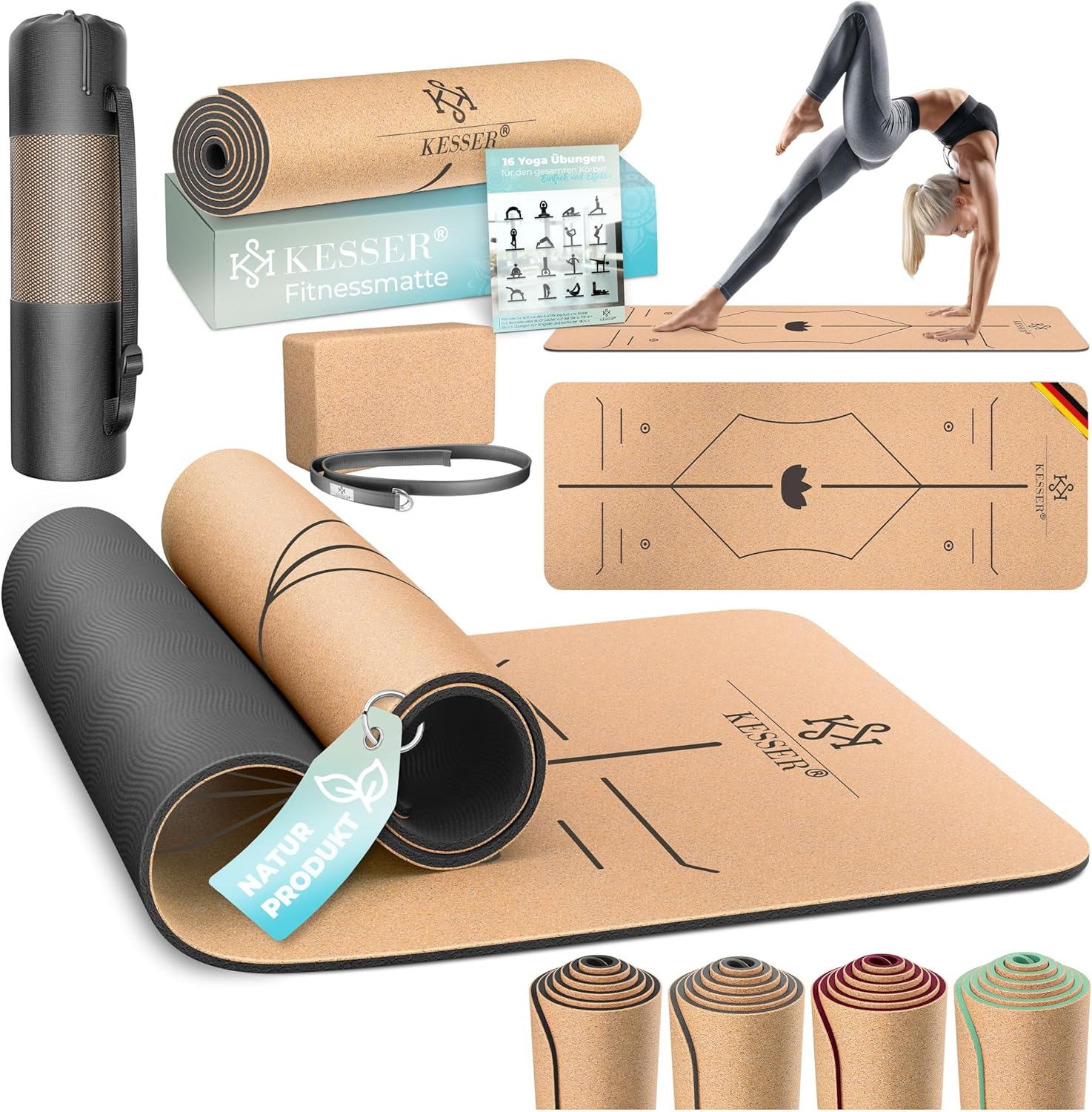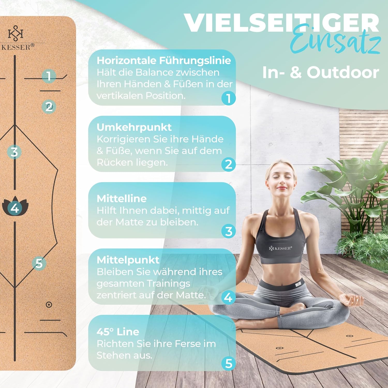 - 𝐒𝐓𝐀𝐁𝐈𝐋 𝐔𝐍𝐃 𝐋𝐀𝐍𝐆𝐋𝐄𝐁𝐈𝐆: Das hochwertige Korkmaterial sorgt wiederum für eine erstaunliche Elastizität und Bruchfestigkeit der Matte. Die Sportmatte lässt sich sehr gut zusammenrollen und springt