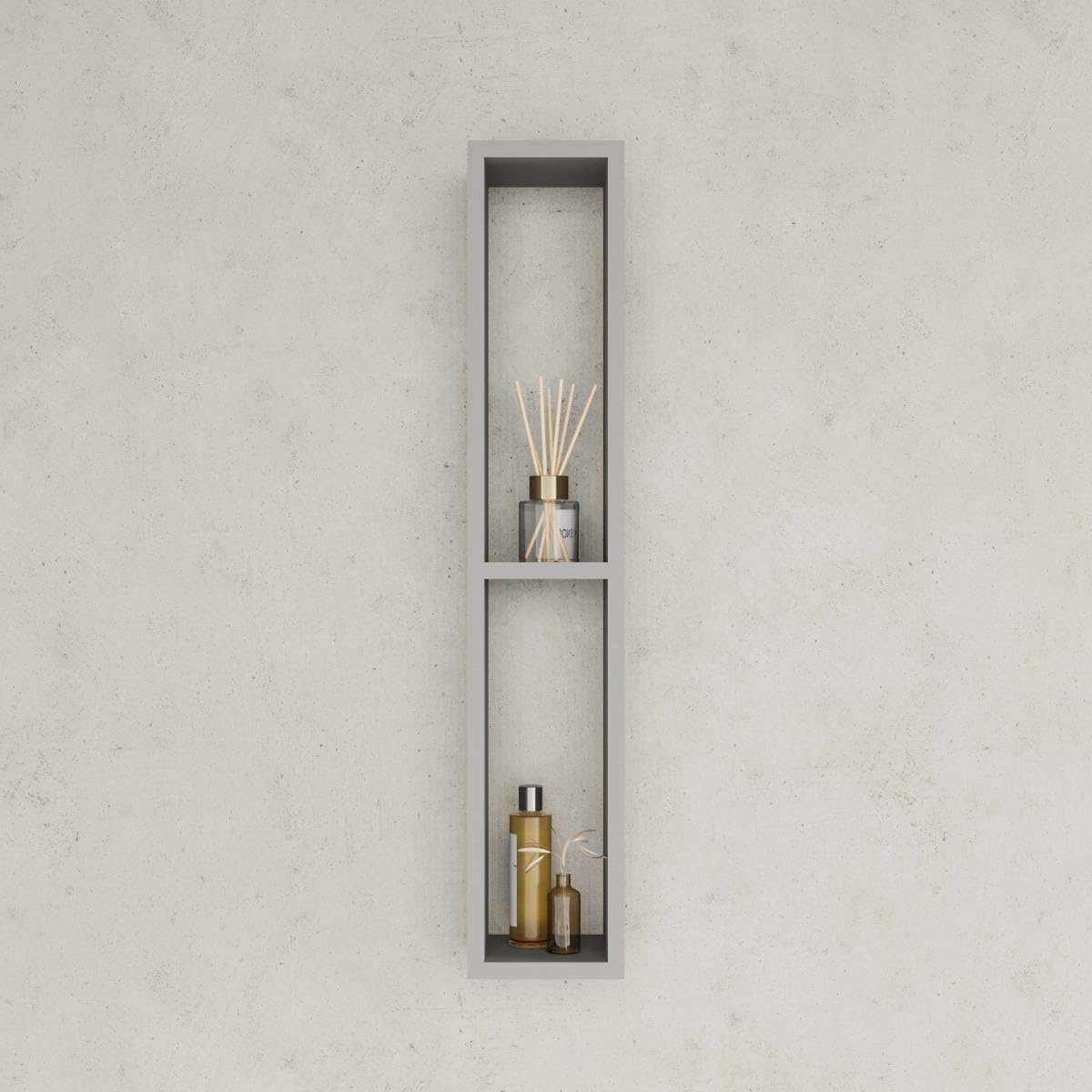 - BAD-HÄNGESCHRANK MIT OFFENEM DOPPELFACH GRAU Ein Hängeschrank mit offenen Fächern kann eine Möglichkeit sein, die Badezimmereinrichtung zu vervollständigen oder wertvollen Stauraum für persönliche Gegenstände zu schaffen. Diese Schrankwand
