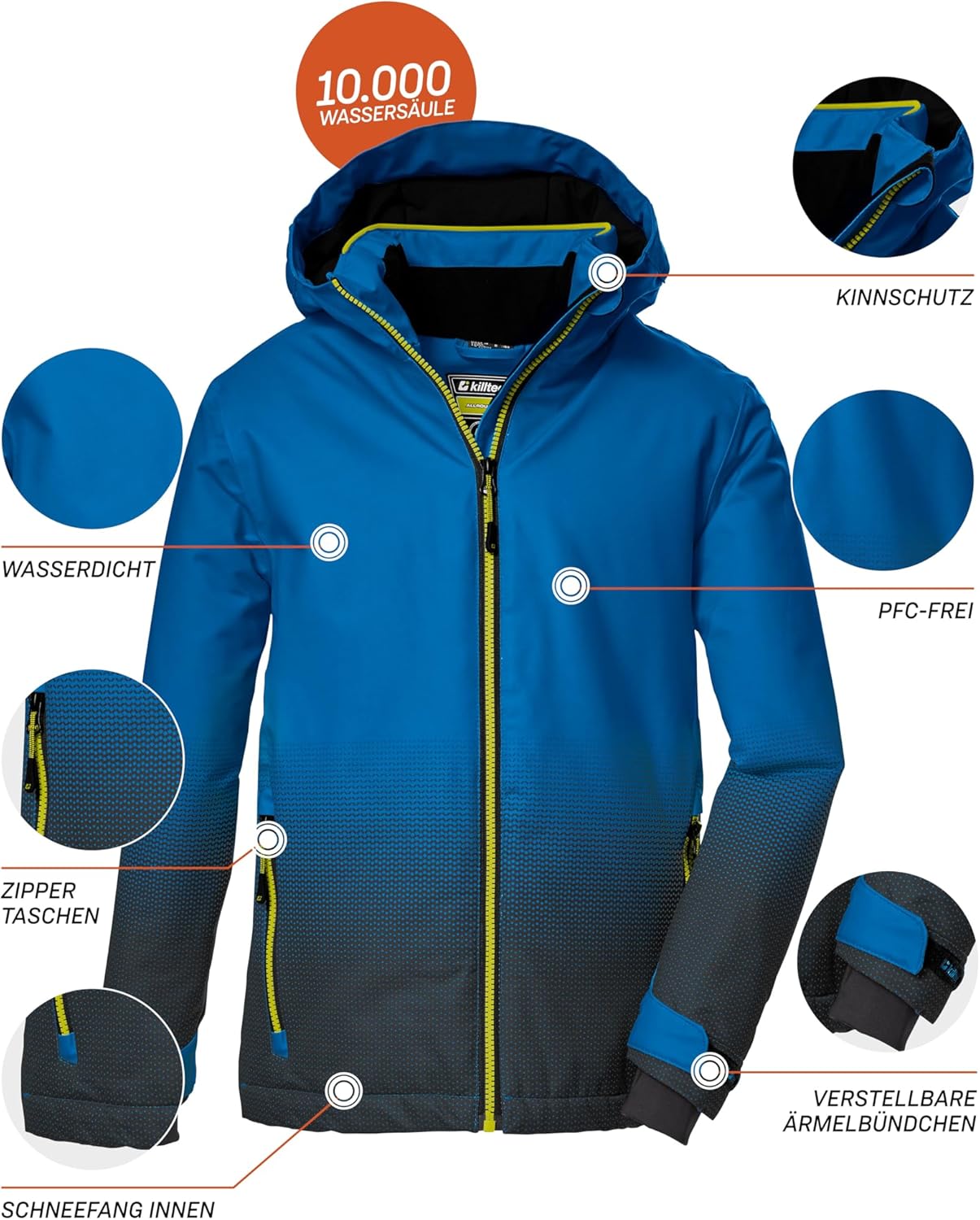 - 10.000 mm Wassersäule, verschweisste Nähte, 100% wasserdicht