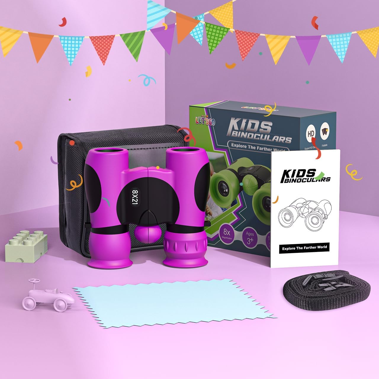 - Sicher für Kinder --- Ferngläser für Kinder leicht zu fokussieren. Zum Schutz der Augen sind mit weichem Gummi umgebene Okulare enthalten, damit Kinder weder Augen noch Gesicht verletzen.