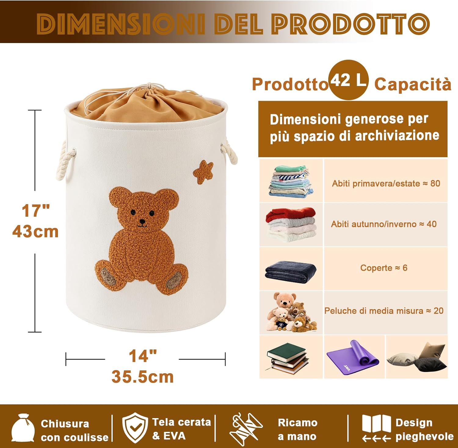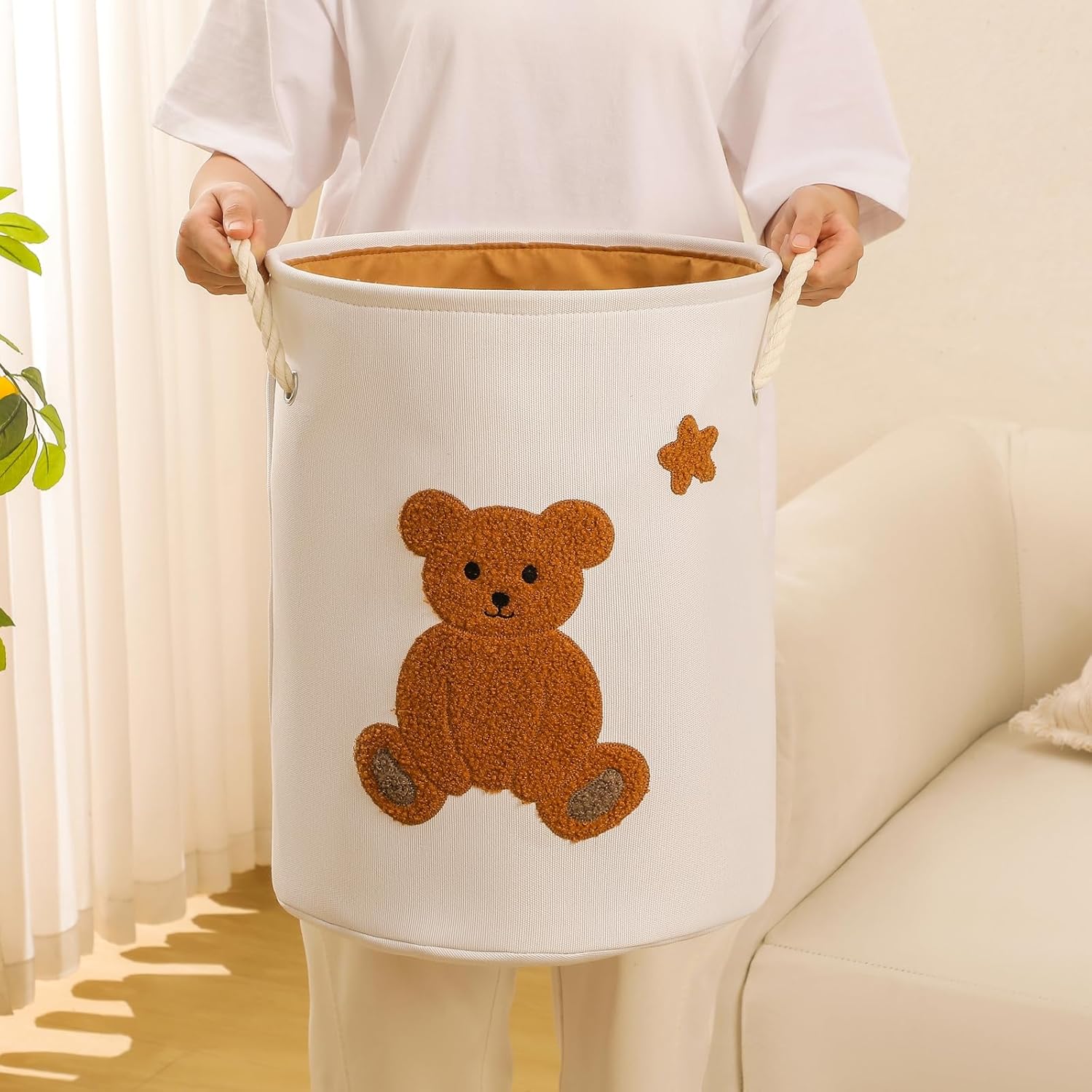 - Niedlicher 3D-Bär & faltbares Design: Mit einem süssen 3D-Bären aus weichem Lammfleece auf der Vorderseite verleiht dieser Wäschesammler jedem Kinderzimmer eine warme und verspielte Atmosphäre – perfekt für das Zimmer eines kleinen Jungen oder