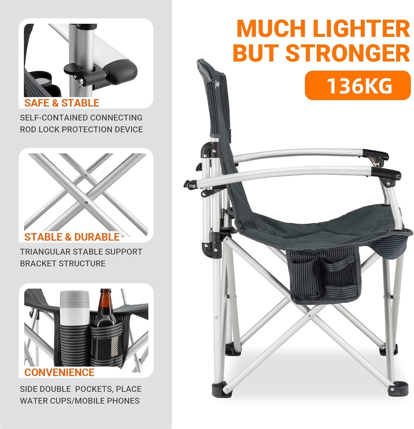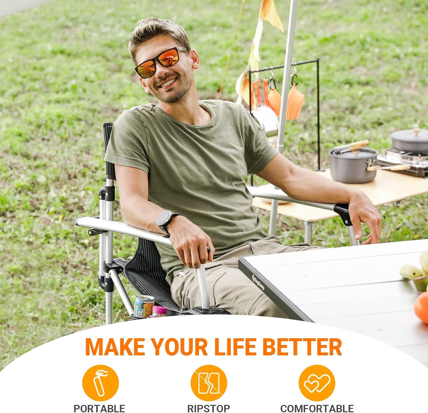 - 【GEBOGENER HARTER HANDLAUF】Der Campingstuhl ist mit hart Armlehnen und einer breiteren Auflagefläche ausgestattet, um besseren Halt zu bieten. Darüber hinaus wurde ein abgerundetes Design hinzugefügt, um eine bessere Unterstützung sowie einen
