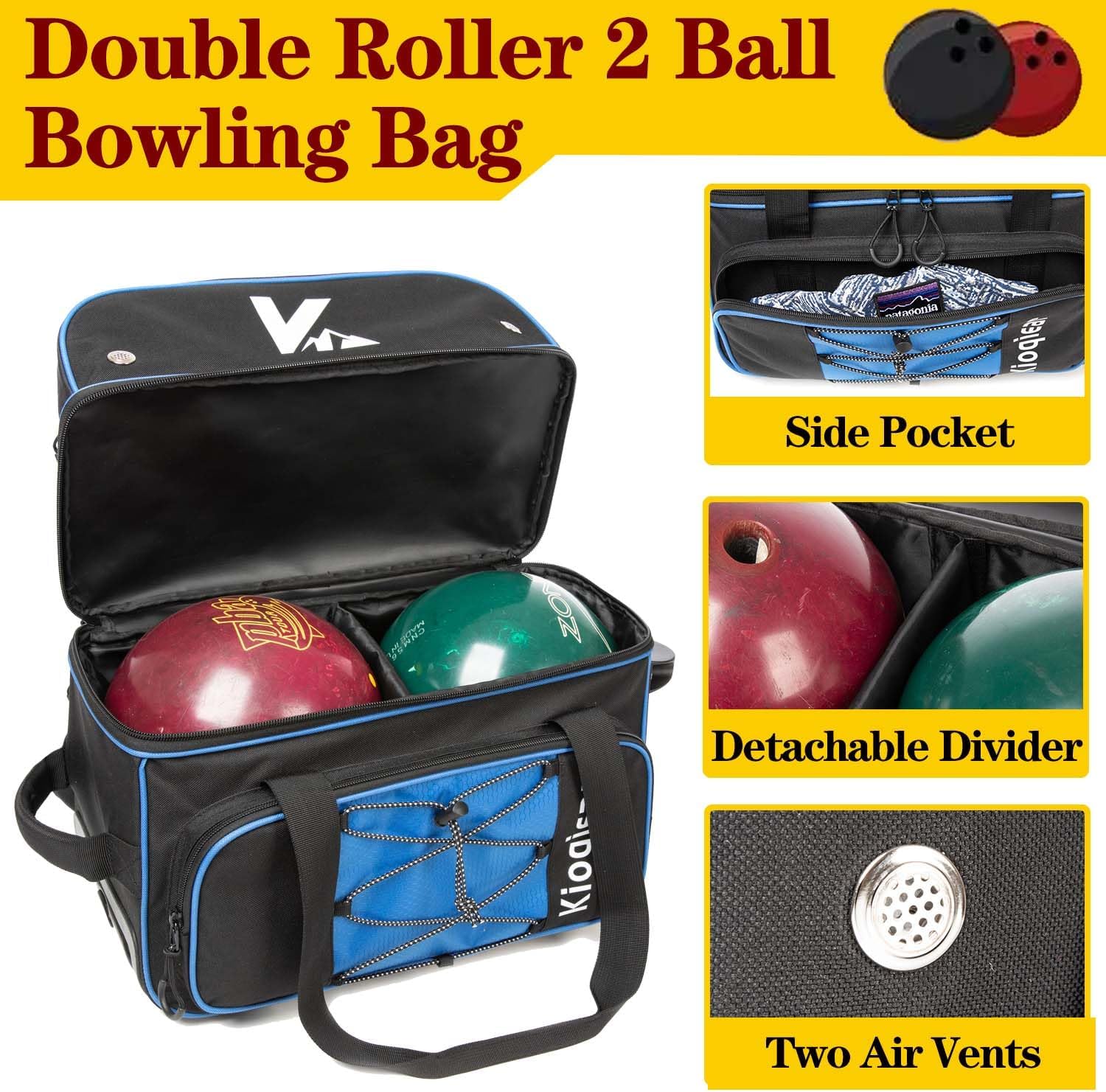 - Separates Schuhfach – Die Kioqiear Doppelroller-Bowlingballtasche Hauptfach bietet Platz für 2 Bowlingbälle, oberes Fach mit Lüftungsschlitzen, die ein Paar Bowlingschuhe bis zu Herrengrösse 15 aufbewahren können, zusätzliche Aufbewahrungstasche