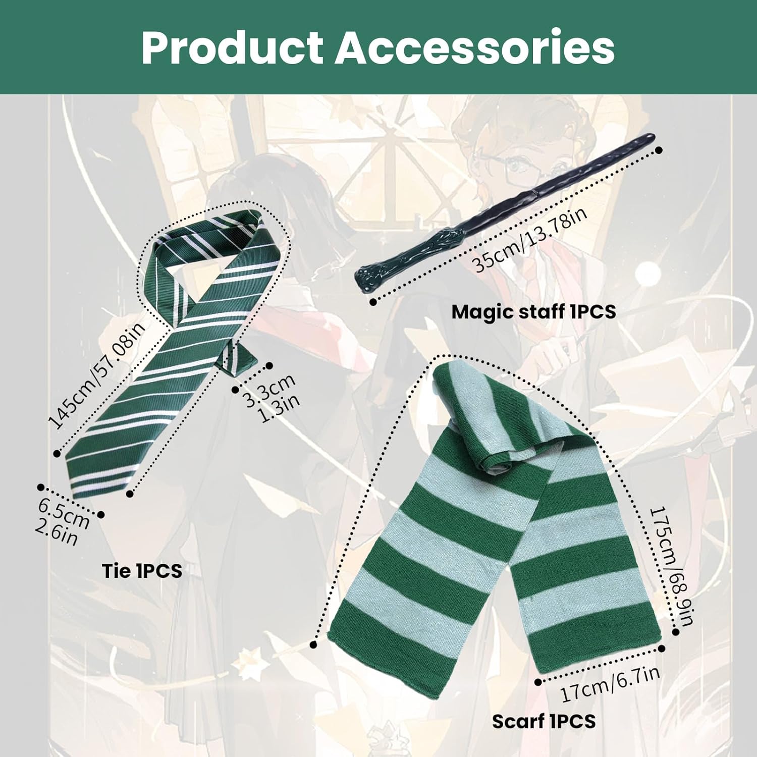 - 【Zauberer Kostüm Set】Das Set enthält Robe Mantel, Krawatte, Schal, Zauberstab, runde schwarze Brille. Tragen Sie dieses Zauberergewand und werden Sie ein Mitglied der Schule der Magie. Bitte lesen Sie die Grössentabelle auf dem Produktbild