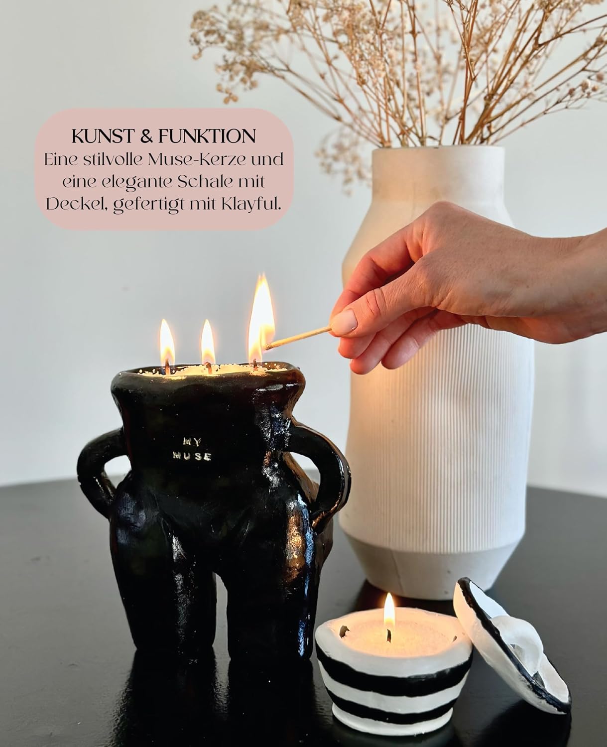 - ALLES-IN-EINEM-SET + SCHRITT-FÜR-SCHRITT-ANLEITUNG – Gestalte einzigartige Kerzen und Keramik mit dem kompletten Klayful-Set. Enthält 400g 100% pflanzliches Perlwachs, 5 gewachste Baumwolldochte à 10cm, 1,5kg lufttrocknenden weissen Ton,