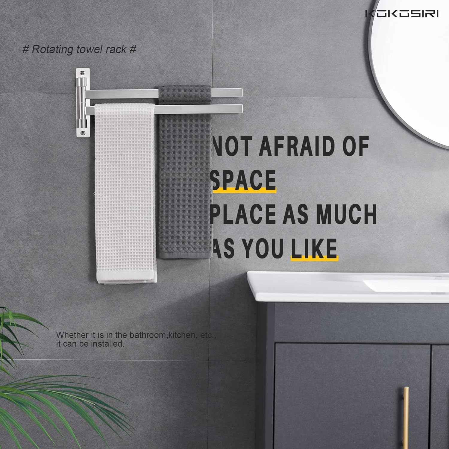 - ◄ Oberflächenbehandlung ► Der drehbare Handtuchhalter hat eine elektrophoretische Lackierung, die fingerabdruck- und wasserdicht ist. Und die Oberflächenabdeckung widersteht täglichen Kratzern, Korrosion und Anlaufen