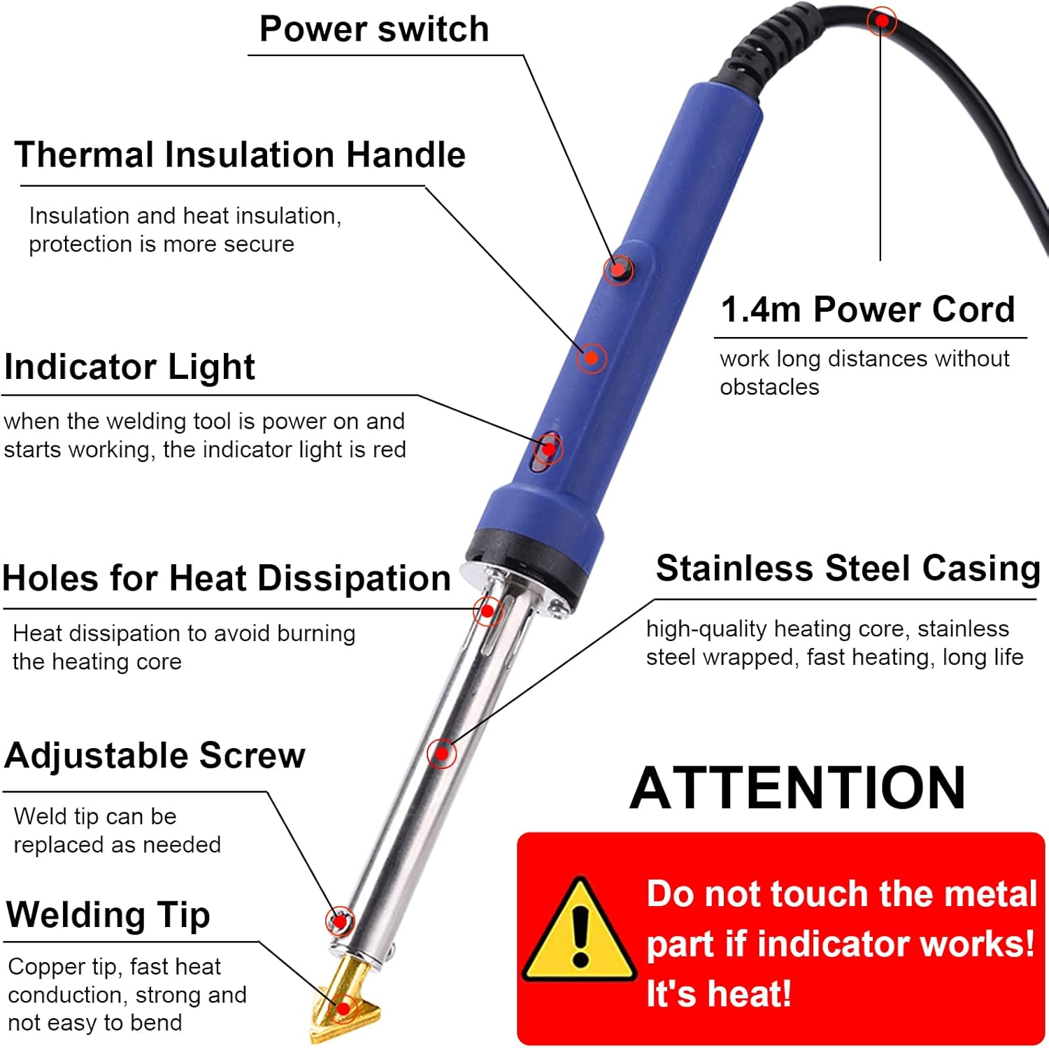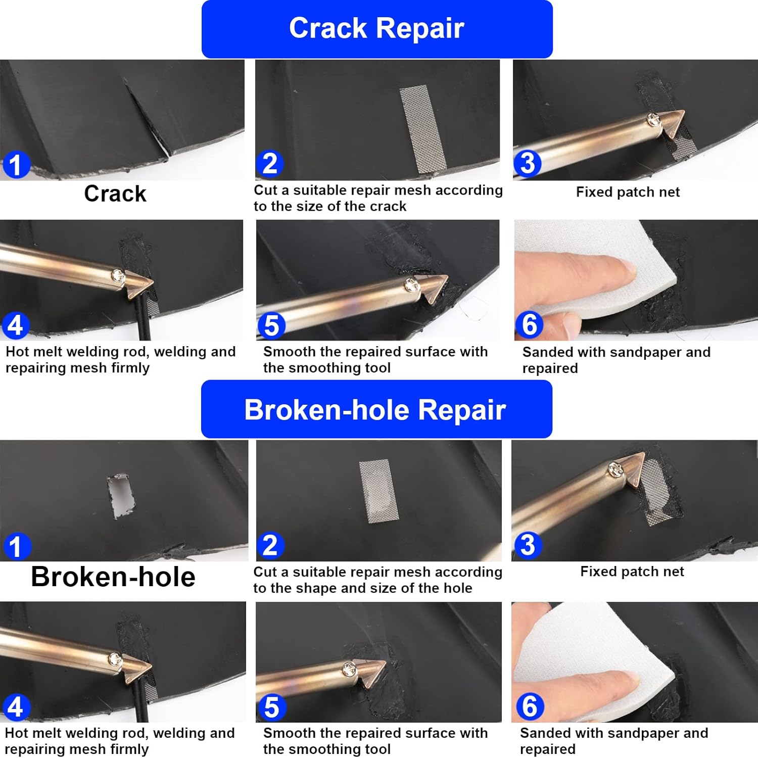 - 【Weit verbreitet】 Egal, ob Sie ein Profi oder ein täglicher Heimanwender sind, unser multifunktionales Schweissset ist eine gute Wahl für die Reparatur von Oberflächen an Autostossstangen, Armaturenbrettern, Kanus, Kajaks, Kraftstofftanks, Kunststoffautoteilen, Kunststoffspielsets und Kunststoff Möbel oder Kunststoff, elektronische Zifferblätter, kleine elektronische Arbeiten usw. Sparen Sie Zeit und Geld bei täglichen Reparaturen.