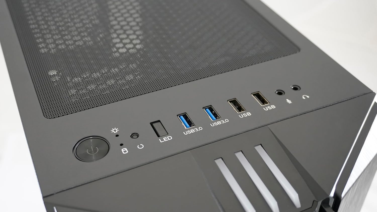 - Stilvolles RGB-Design: Schwarzes Frontpanel mit eleganter RGB-Mittelsäule – Farben per RGB-Taste am I/O-Panel individuell anpassbar.