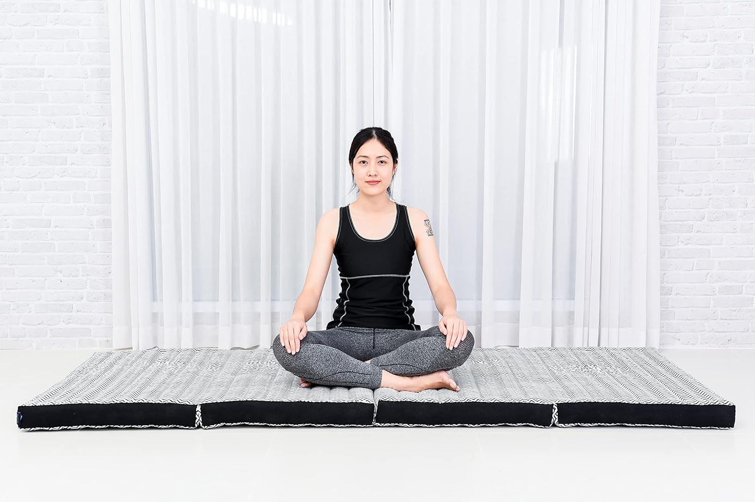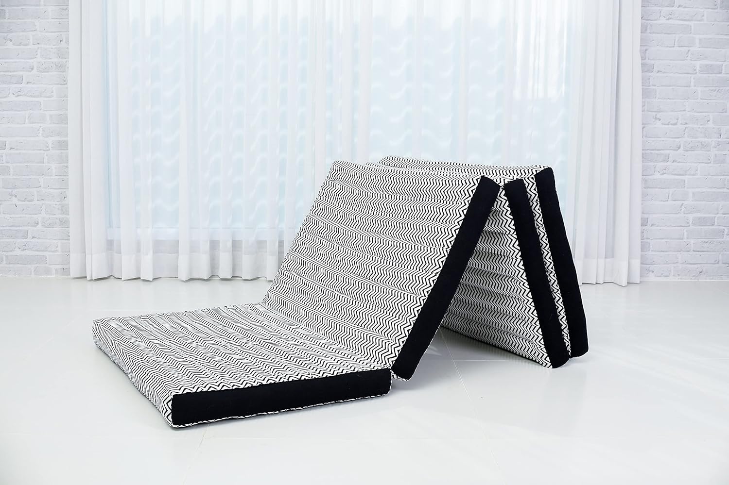 - Mass aufgeklappt (BxTxH): 200 x 70 x 8 cm; Mass zusammengefaltet: 70 x 50 x 32 cm; Mattendicke: 8 cm; Material: Baumwolle; Farbe: schwarz weiss