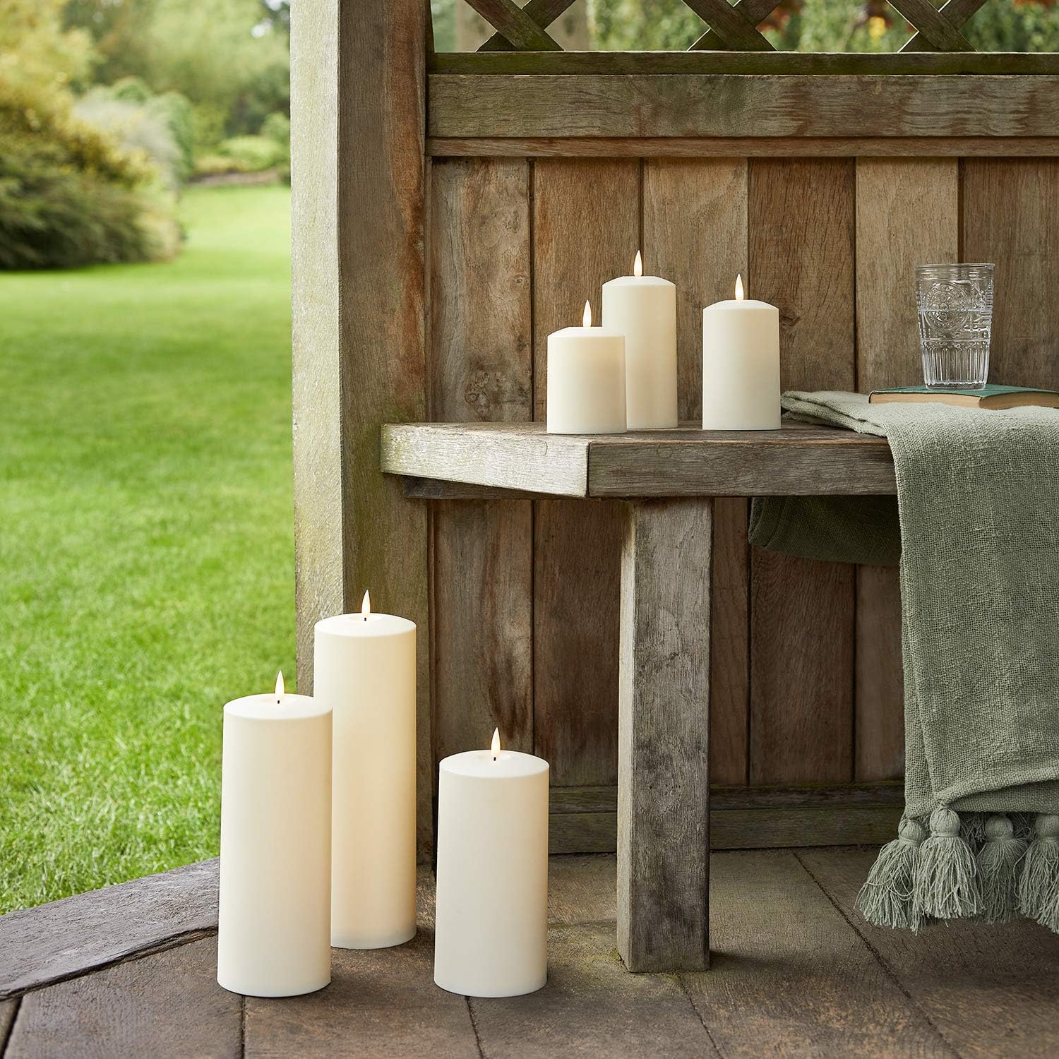 - Packungseinheit - Erhalte ein 6er Set mit cremefarbenen Outdoor Kerzen im traditionellen Look mit flackernden LED Flammen, die den echten Kerzen in nichts nachstehen!
