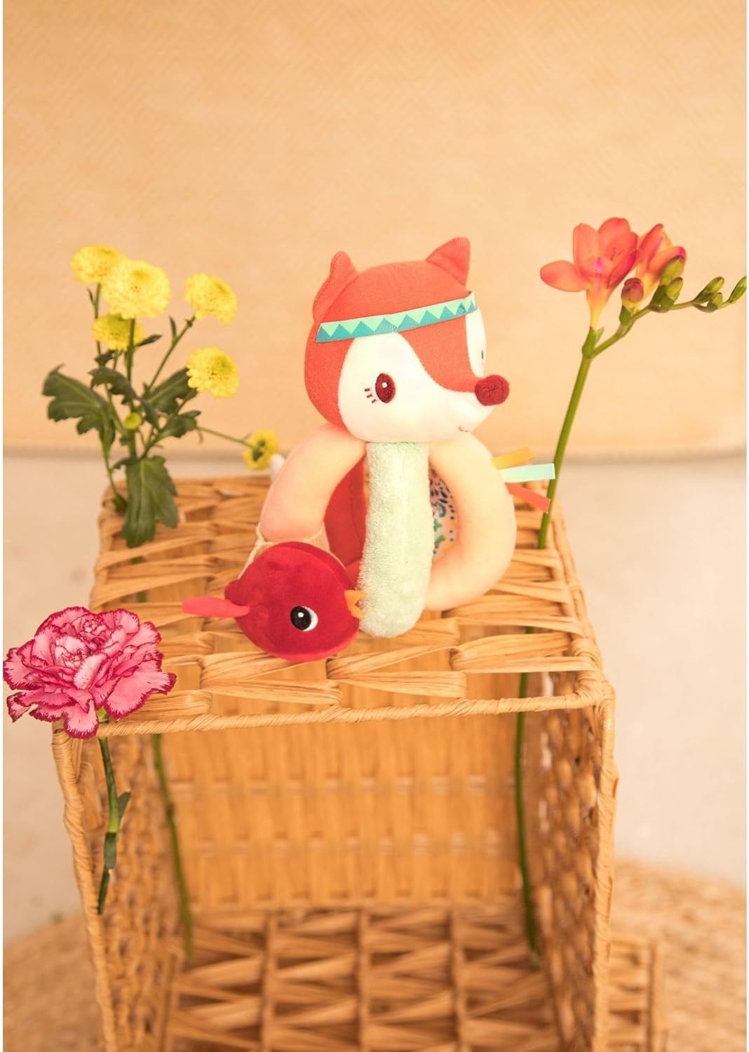 - Alice versteckt sich, um das Baby zu überraschen: Die Füchsin Alice versteckt sich zwischen den Griffen und bietet ein interaktives und lustiges Spiel, das die Neugierde weckt und die Sinne des Babys schon in den ersten Monaten anregt.