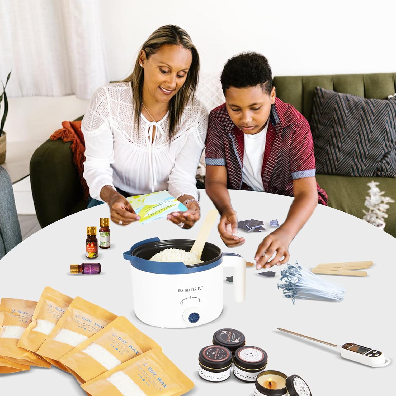 - Komplette DIY Kerze machen Kit: Enthält benutzerdefinierte 8 Packungen Sojawachs, 1 * elektrische Wachsschmelzer, 1 * Rührlöffel, 8 * Kerze Gläser, 2 * dekoriert Glas Aufkleber, 6 * Duftöl, 8 * Farbe Blöcke, 1 * Thermometer, eine Reihe von