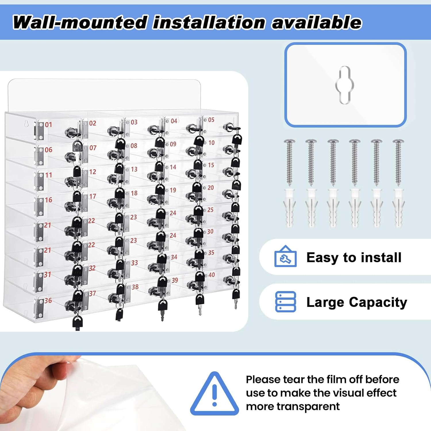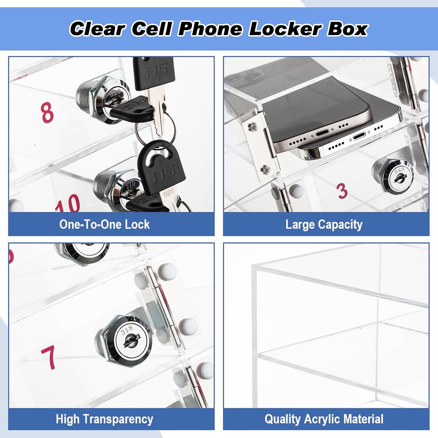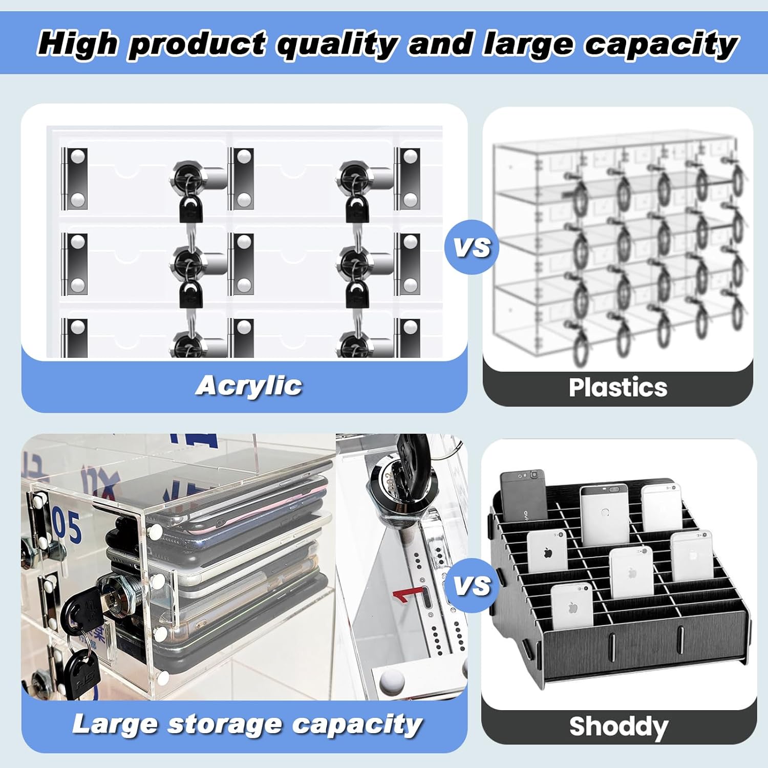 - 【SICHERHEITSFUNKTIONEN】: Der Handyaufbewahrungskasten verfügt über ein Sicherheitsverriegelungsdesign mit Schlüssel und einen robusten Griff. Das Sicherheitsschloss mit Schlüssel stellt sicher, dass die Mobiltelefone sicher sind, und der Griff