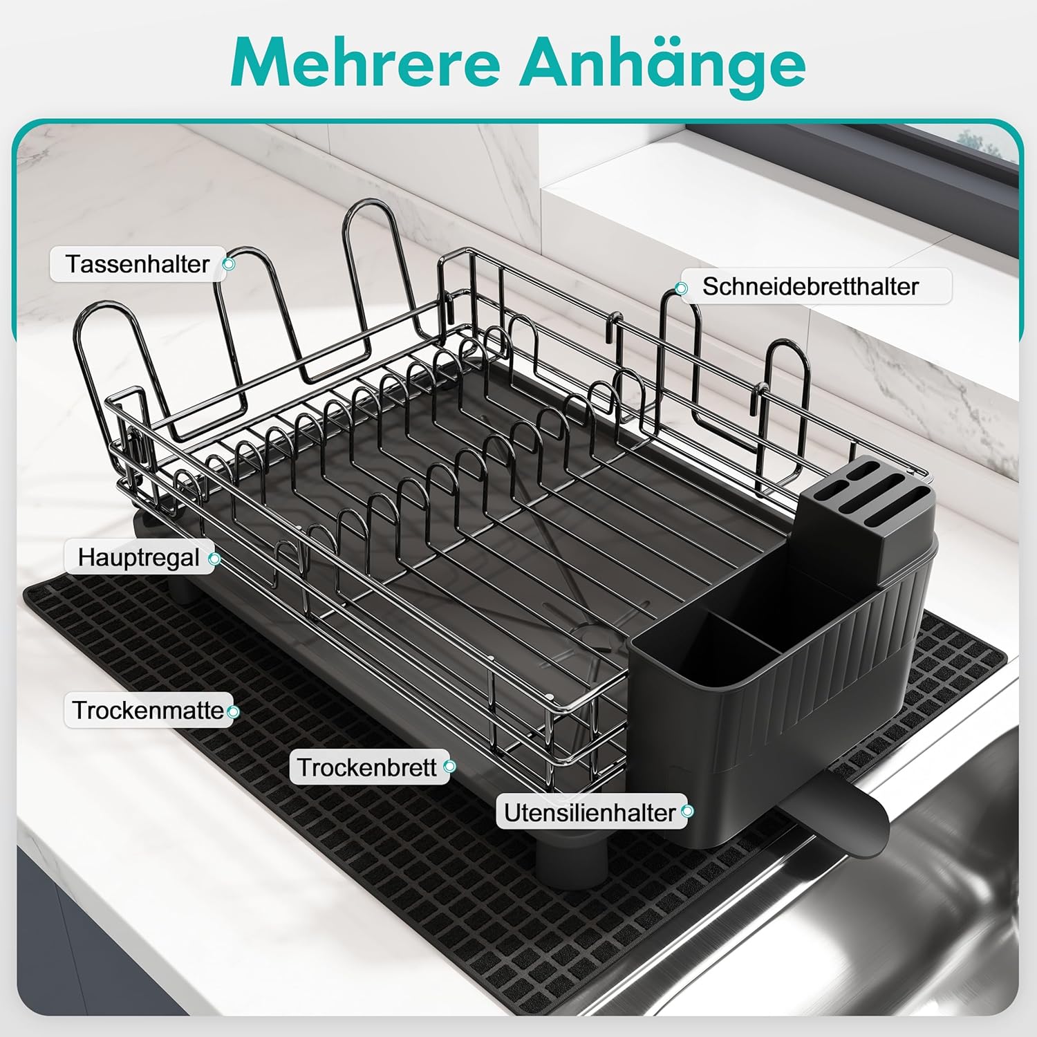 - 100 % rostfrei und superstabil: Der Geschirrabtropfgestell für die Küche besteht aus robustem Edelstahl mit einer Nanobeschichtung, die allen Schäden, die Rost oder Verfärbungen verursachen, widersteht – er ist langlebig, leicht zu reinigen und auf