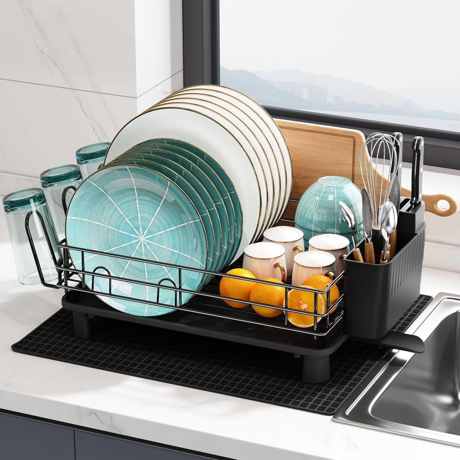 - Halten Sie Ihre Küchentheke trocken und organisiert: Durch das verbesserte Design sparen Sie 50 % des Stauraums und 100 % der Lagerzeit in der Küche. Sie werden diese Abtropfgestelle mindestens dreimal täglich oder öfter verwenden