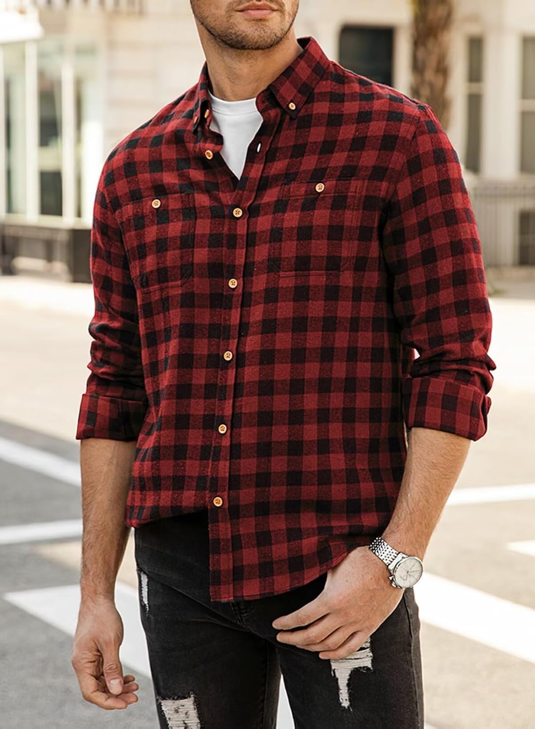 - Karohemd langärmeliges: Dieses klassische karohemd für männer zeichnet sich durch ein elegantes karo- und knopfdesign aus, gute qualität und mode, regular fit