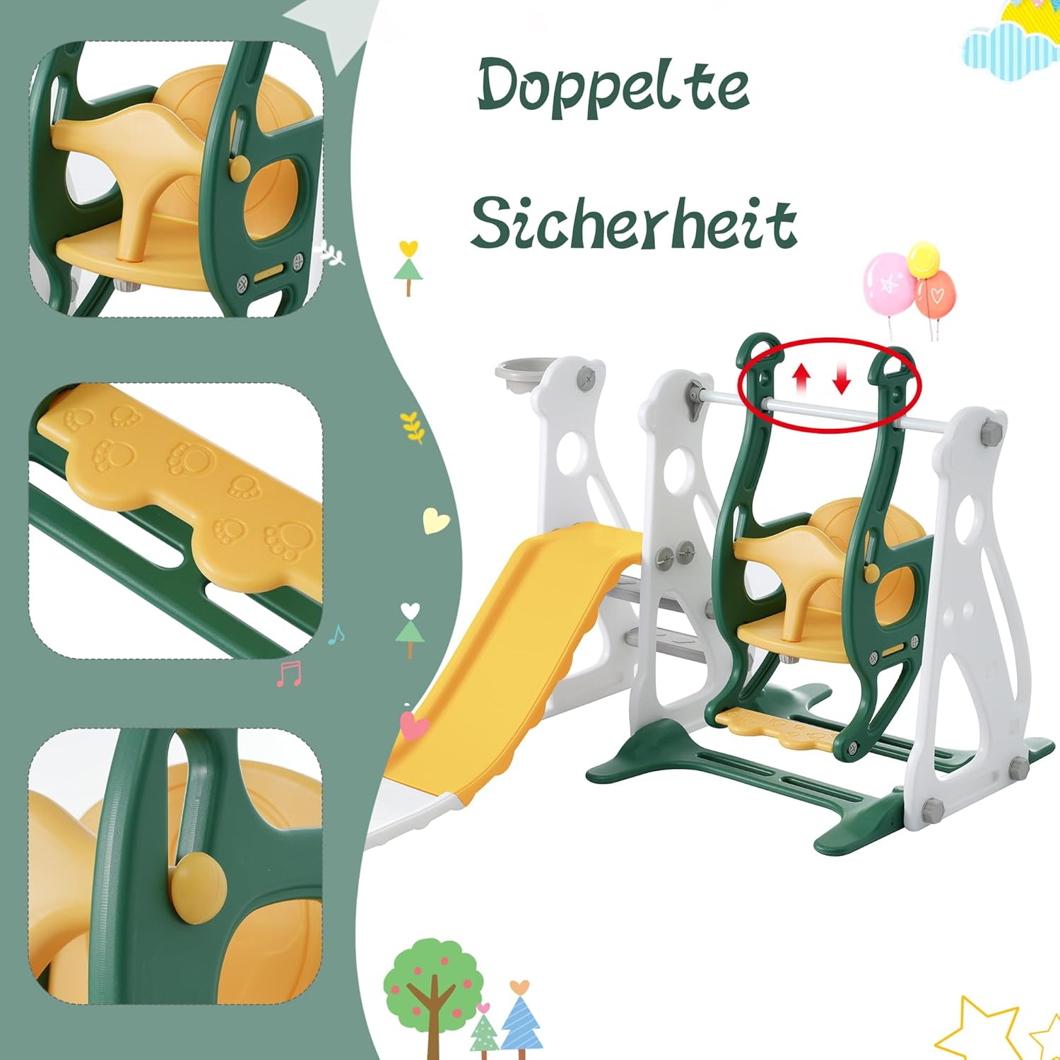 - ♥♥ Wir stellen unsere vielseitige 4-in-1-Kinderrutsche vor - das ultimative Spielplatzabenteuer! Diese Rutsche ist nicht nur eine Rutsche, sie ist eine ganze Welt voller Spass. Mit einer Rutsche, einer Schaukel, einer Treppe und einem Basketballkorb