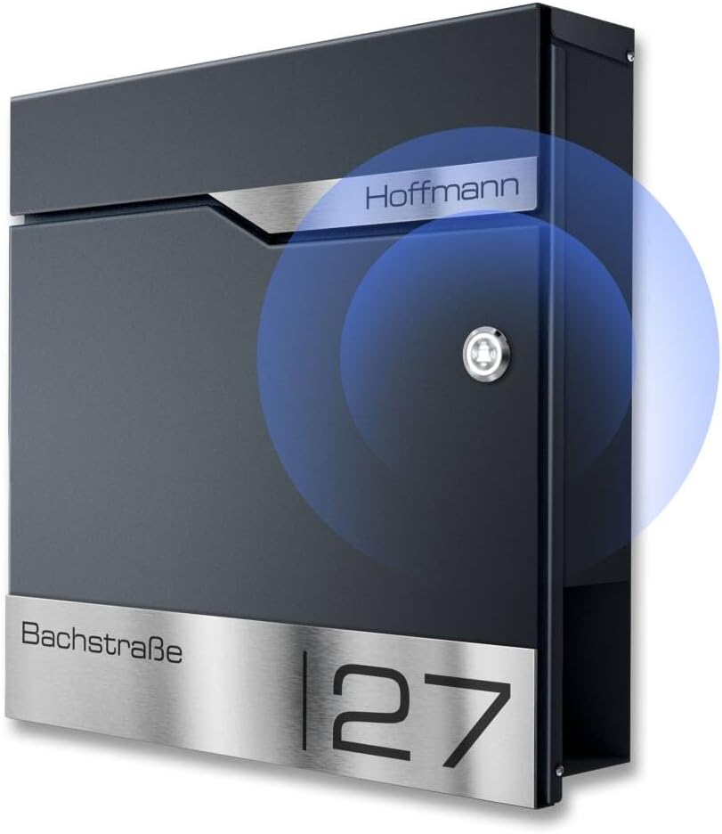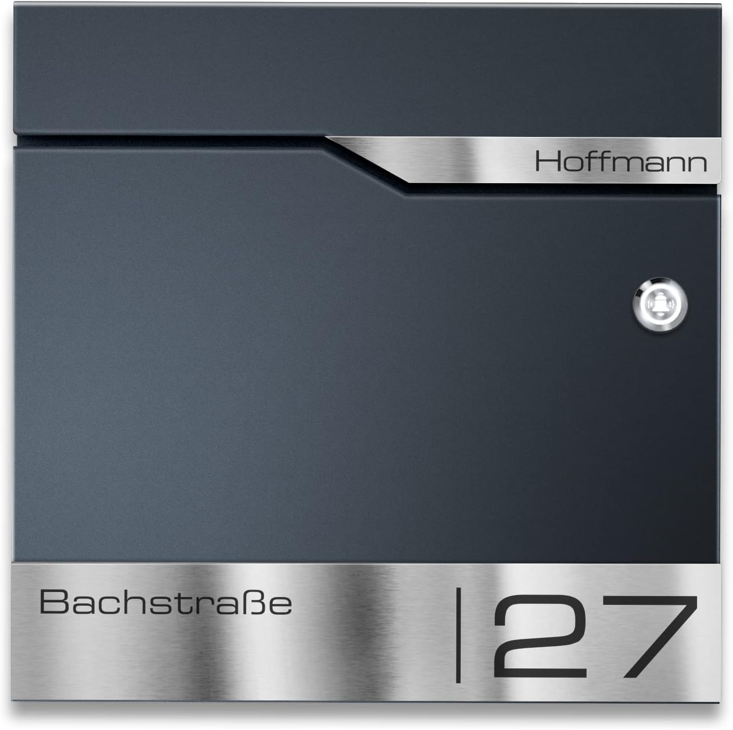 - Der exklusive Briefkasten aus massivem, hochwertigem Stahl ist in Anthrazit RAL 7016 pulverbeschichtet und somit äusserst witterungsbeständig und langlebig