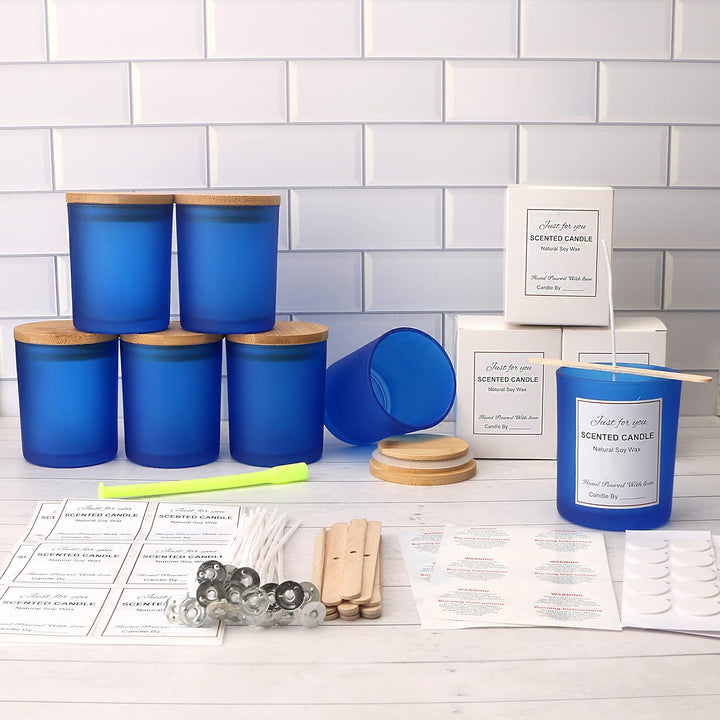 - ▶️ Kaufen Sie es und Sie erhalten: 12 Stück mattierte blaue Gläser mit luftdichtem Bambusdeckel, 20 Stück 15,2 cm Kerzendochte, 20 Stück Kerzendocht-Aufkleber, 12 Stück Dochthalter, 12 Stück Kerzenwarnetiketten, 12 Stück