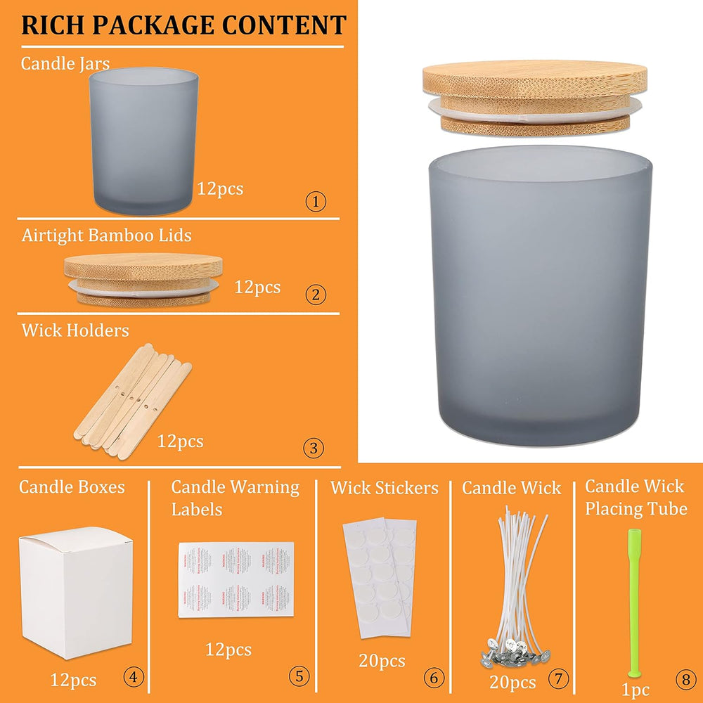 - ▶️ Kaufen Sie es und Sie erhalten: 12 Stück Milchglasgläser mit luftdichtem Bambusdeckel, 20 Stück 15,2 cm Kerzendochte, 20 Stück Kerzendochtaufkleber, 20 Stück Dochthalter, 12 Stück Kerzenwarnetiketten, 12 Stück