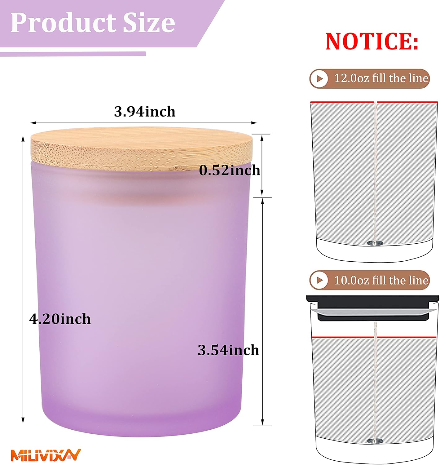 - ▶️ Kaufen Sie es und Sie erhalten: 12 Stück mattviolette Gläser mit luftdichtem Bambusdeckel, 20 Stück 15,2 cm Kerzendochte, 20 Stück Kerzendochtaufkleber, 20 Stück Dochthalter, 12 Stück Kerzenwarnetiketten, 12 Stück