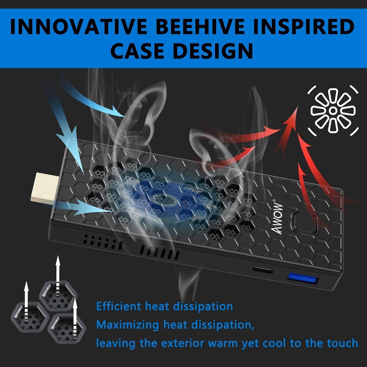 - 【Eingebautes Lüfterdesign】AWOW AR40S rüstet das spezielle Lüfterkühlsystem aus. Das Lüfterdesign trägt dazu bei, dass der Mini-Computer-Stick ruhig und stabil arbeitet, ohne zu überhitzen.