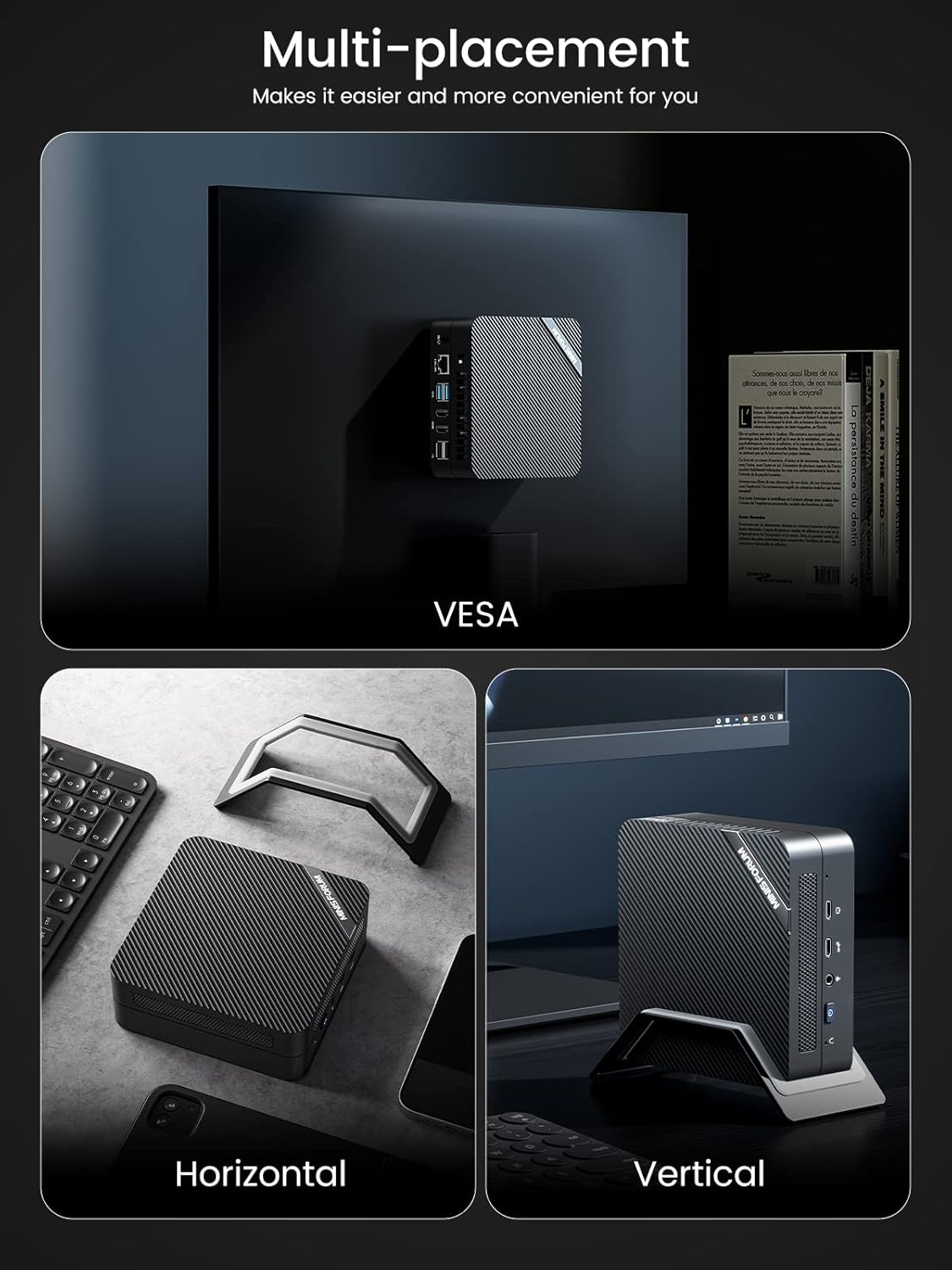 - 【Klein und leistungsstark】 Die Grösse des MINISFORUM UM560XT beträgt nur 12,8 cm x 12,66 cm x 4,65 cm und ist einfach zu installieren und zu konfigurieren. Spart Platz auf dem Desktop und verbraucht weniger Strom als gleichwertige Alternativen. Es