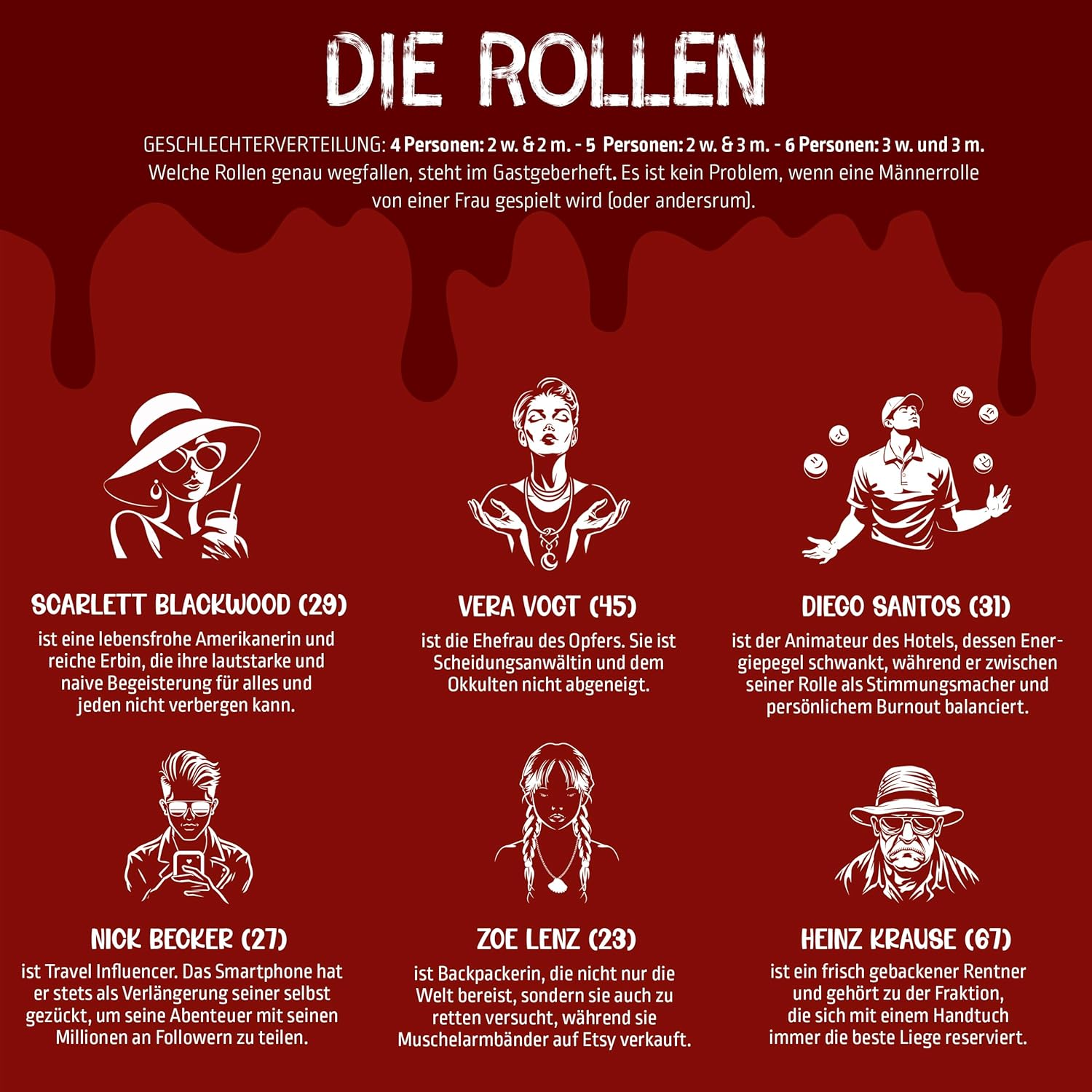 - 🥳 Krimispass für Zuhause - Jeder Teilnehmer wird zum Hauptverdächtigen in einem packenden Mordfall. Spielt ausgefallene Charaktere und löst gemeinsam das Verbrechen